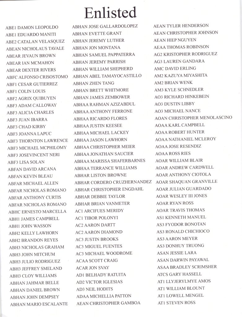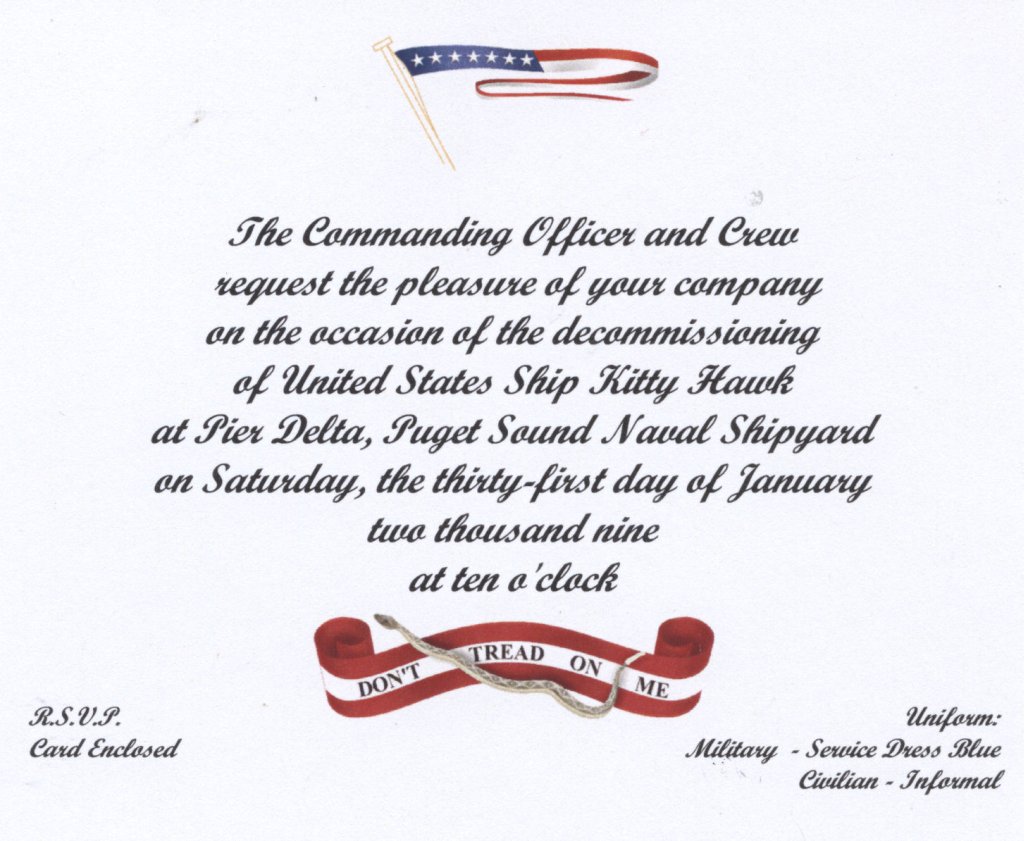 "More than 2,000 people, and millions of memories, filled USS Kitty Hawk's hangar bay Jan. 31, as past and present crewmembers, families and friends gathered for a ceremony to honor the legacy of the Navy's oldest active warship [at the time]." (Text courtesy of USS Kitty Hawk Public Affairs.)