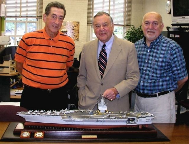 74k | Left to right: Joel Rosen, President, Motion Models Inc.; Admiral James L. Holloway III, former Chief of Naval Operations (CNO, 1974–1978) and former Commanding Officer of USS Enterprise (CVAN-65, 1965–1967); Pete Papa, Motion Models Master Modeler. Permanent installation of a Motion Models-built model of Enterprise at the U.S. Naval Museum in Washington, D.C. |