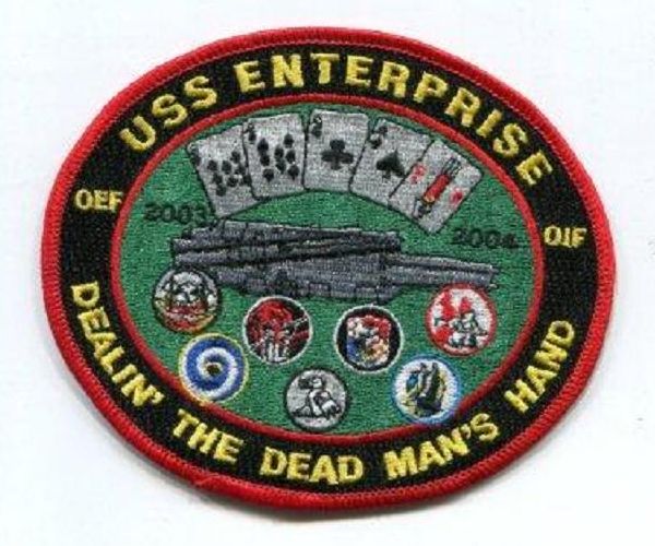 65k | "USS Enterprise, OEF, OIF, Dealin' the Dead Man's Hand." South Atlantic-Mediterranean-Persian Gulf cruise, 28 August 2003–29 February 2004. |