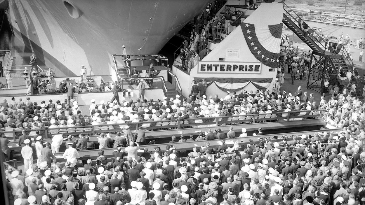 77k | Enterprise (CVAN-65) was sponsored by Mrs. William B. (née Bertha Irene Ready), wife of the Secretary of the Navy. |