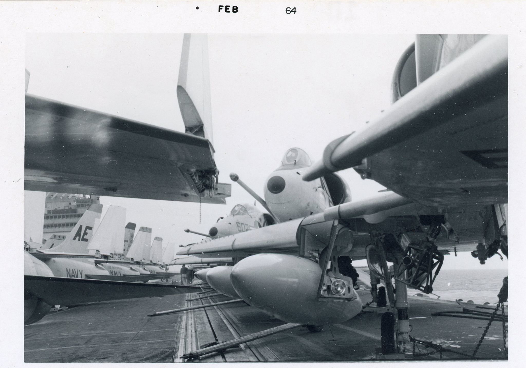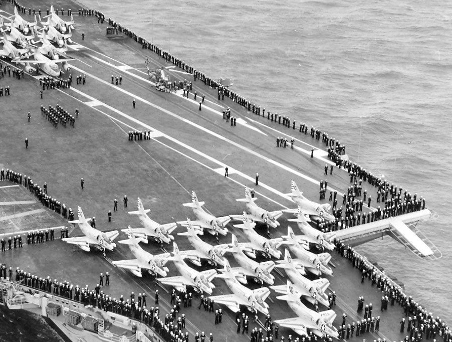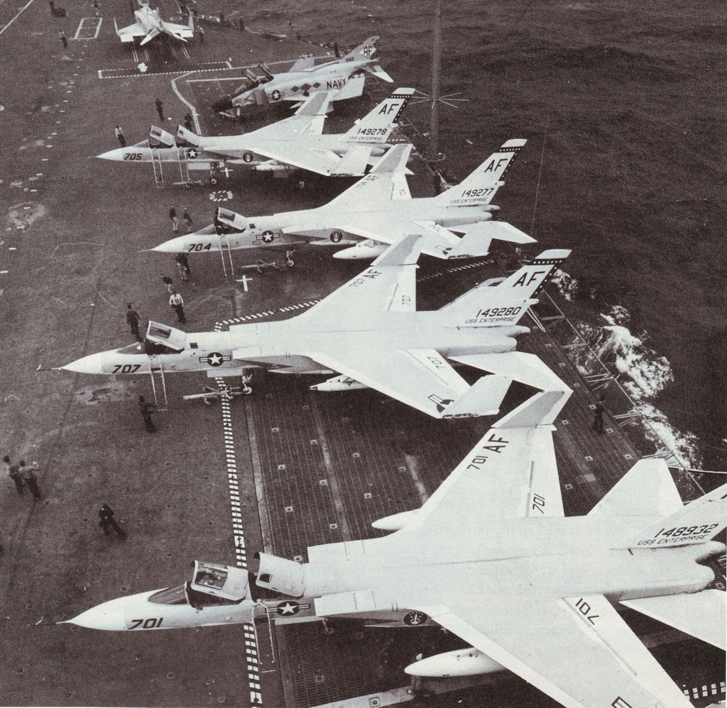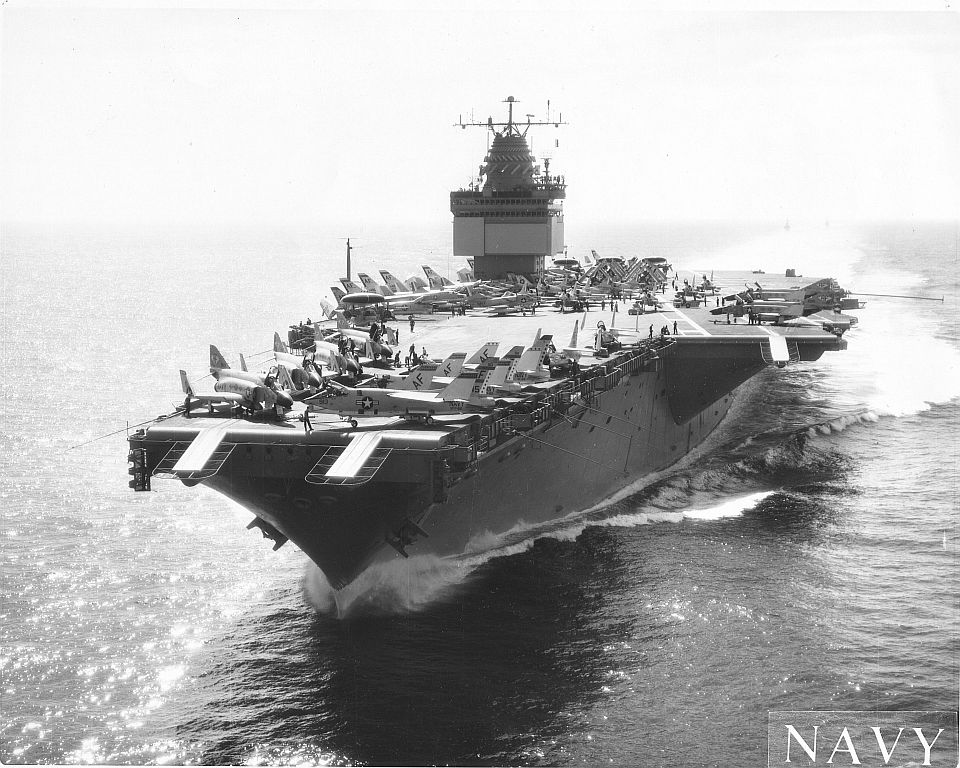 1.45M | USS Enterprise (CVAN-65), with Carrier Air Group (CVG) 1 aboard, in Guantánamo Bay, Cuba, February 1962. The Big E had been commissioned on 25 November 1961 and made her shakedown cruise between 5 February and 5 April 1962. National Naval Aviation Museum, Photo No. 1996.488.125.029. |