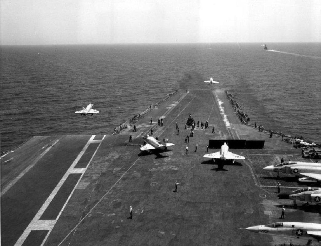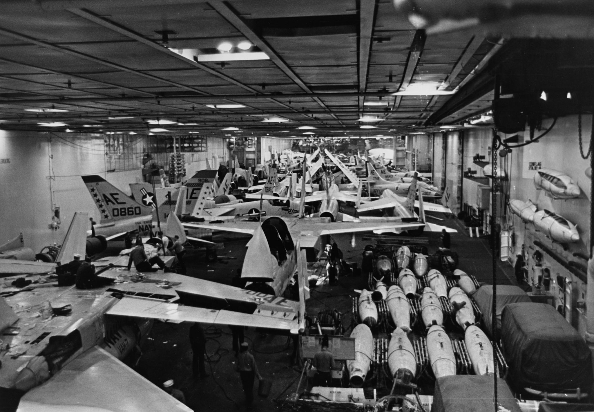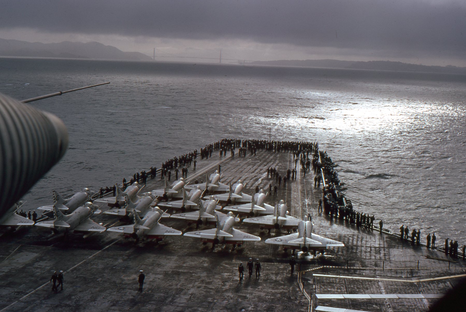 1.45M | USS Enterprise (CVAN-65), with Carrier Air Group (CVG) 1 aboard, in Guantánamo Bay, Cuba, February 1962. The Big E had been commissioned on 25 November 1961 and made her shakedown cruise between 5 February and 5 April 1962. National Naval Aviation Museum, Photo No. 1996.488.125.029. |