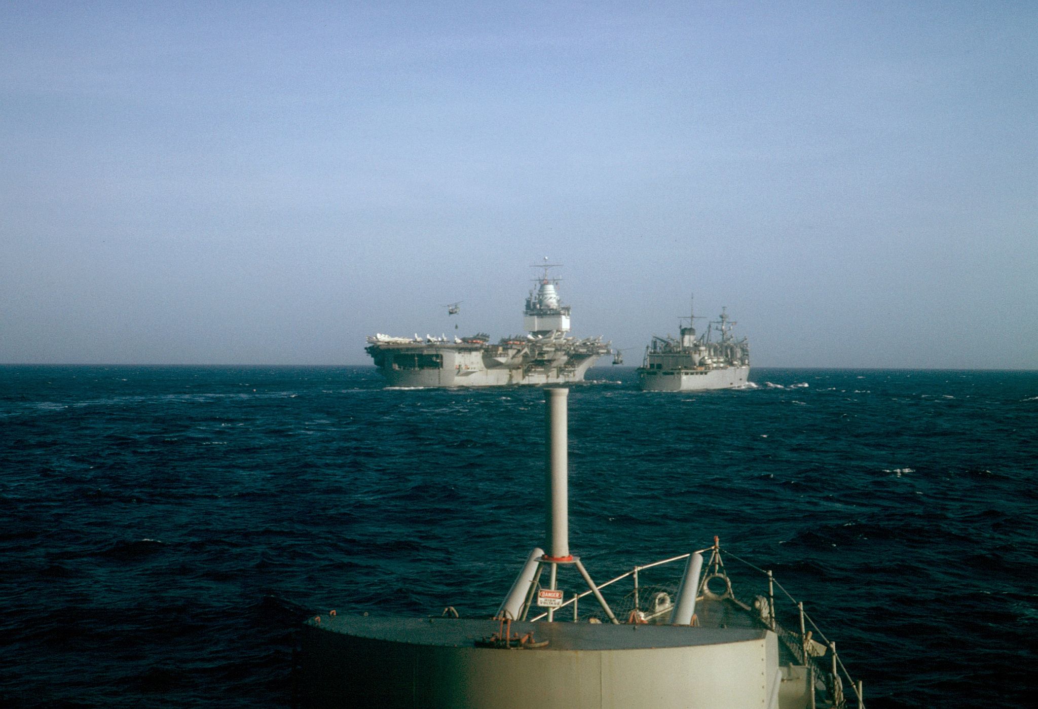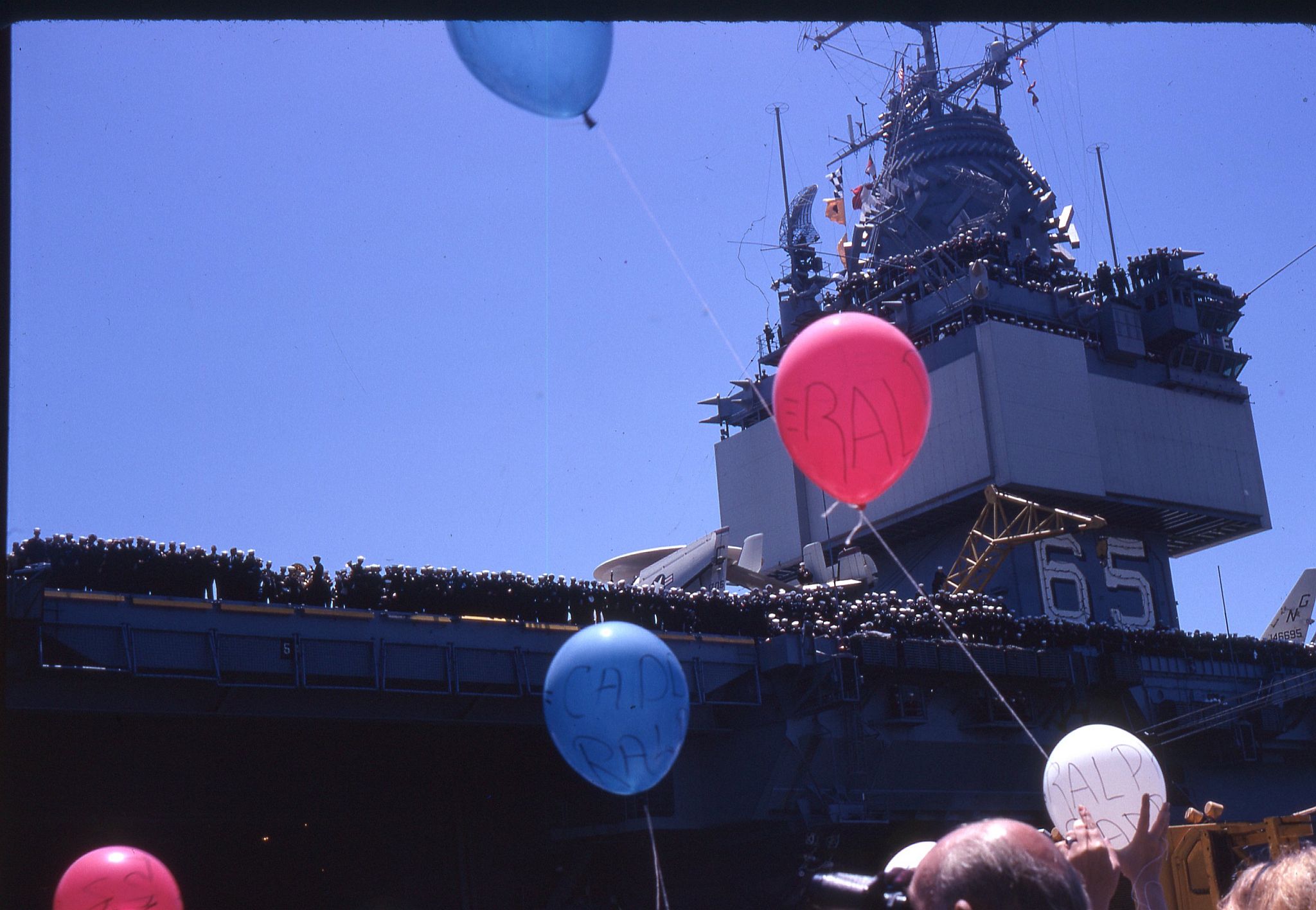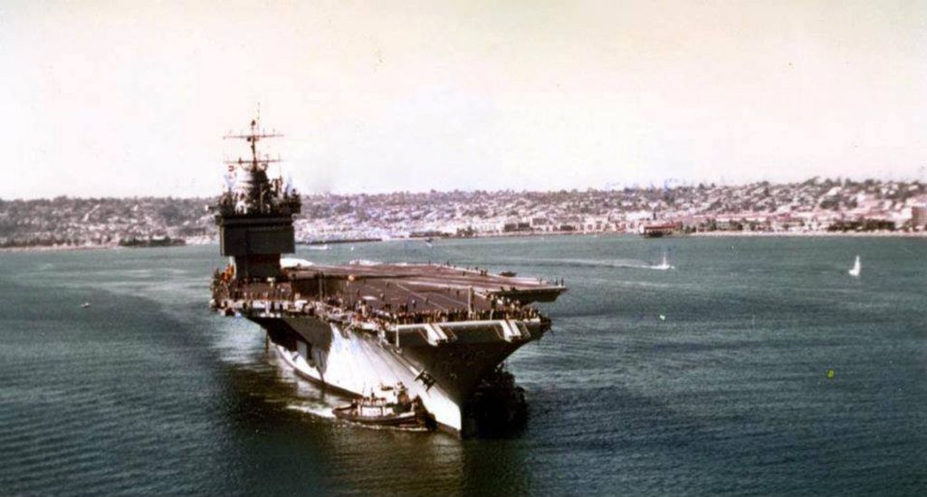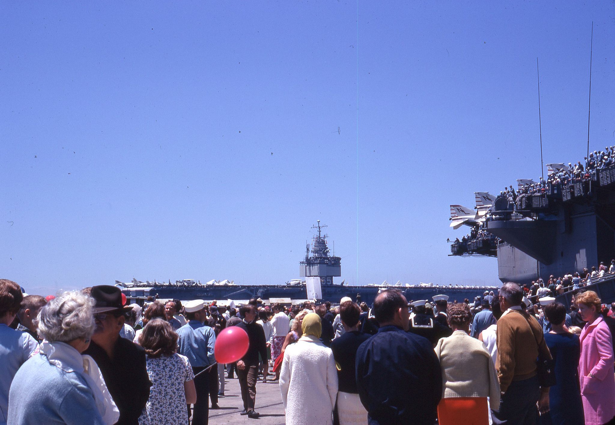 110k | USS Enterprise (CVN-65) docking at North Island NAS on 2 December 1978, as seen from USS Kitty Hawk (CV-63). USS Belleau Wood (LHA-3) is in background. |