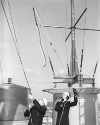 66k | Mrs. William B. Franke, wife of the Secretary of the Navy, christening the ship. |