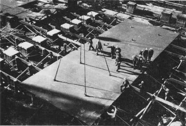 111k | Laying of the keel plate of the nuclear-powered U.S. aircraft carrier Enterprise (CVAN-65), 4 February 1958, at Dry Dock No. 11 of Newport News Shipbuilding, Newport News, Virginia (USA). Naval Aviation News, April 1958 issue. |