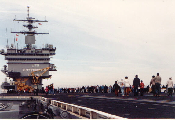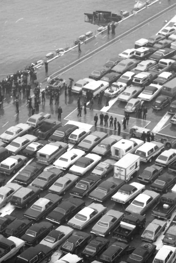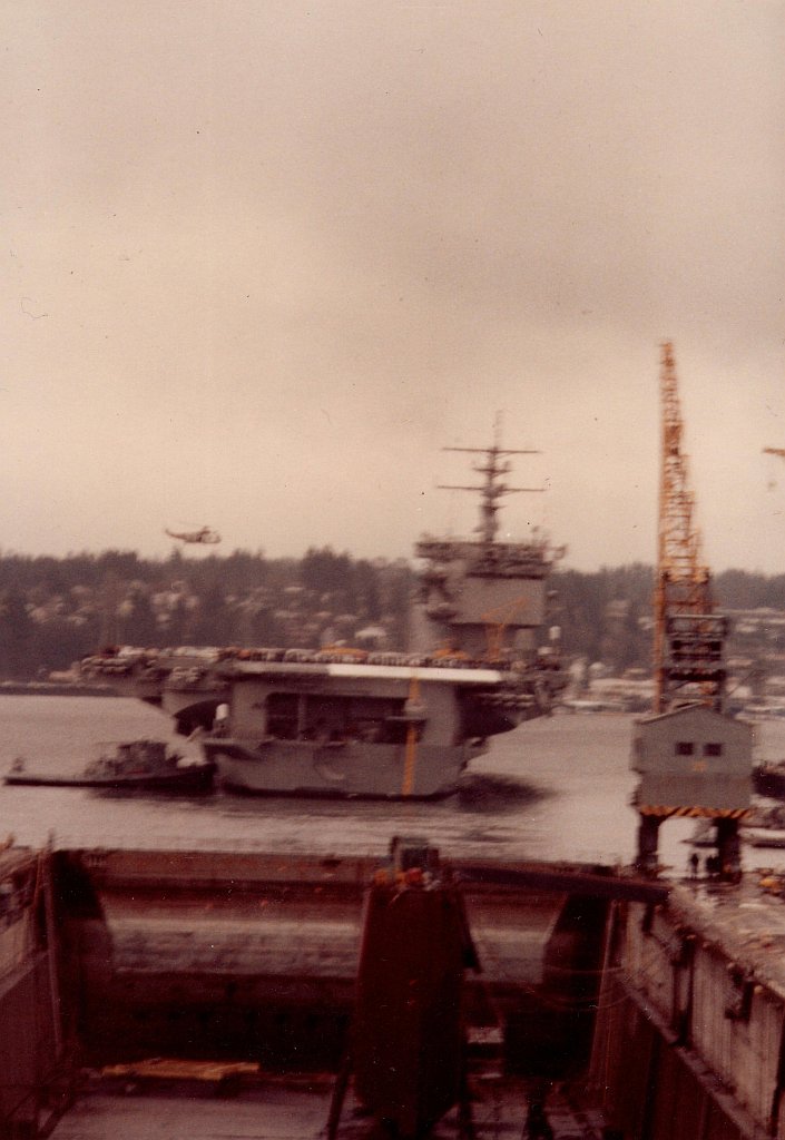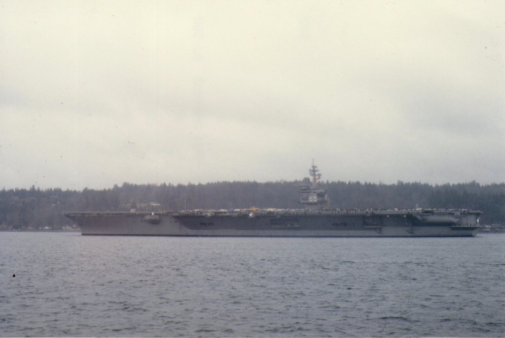 78k | "These photos are all of the Big E loaded up with cars for the transit back to Alameda from PSNSY Feb 11, 1982." "The one shrouded in fog was taken near the entrance to the Strait of Juan de Fuca at Worden State Park." "All photos taken by Kent Smith (ET2), Dallas TX. Crewman at the time." |