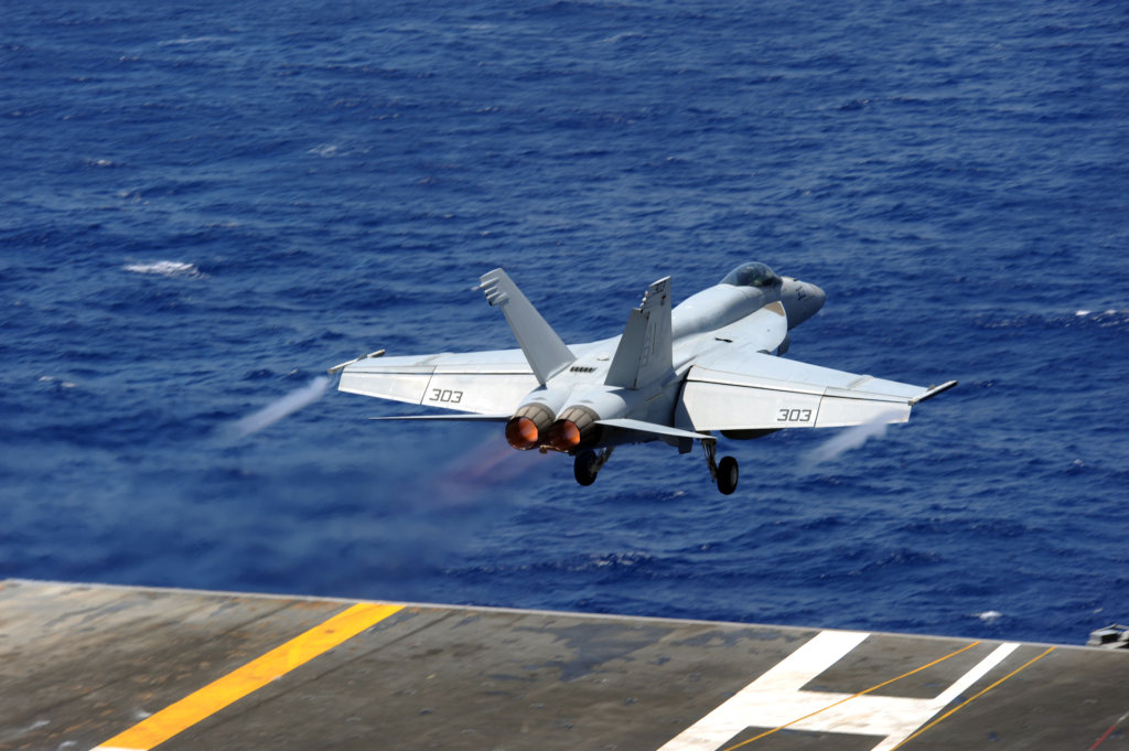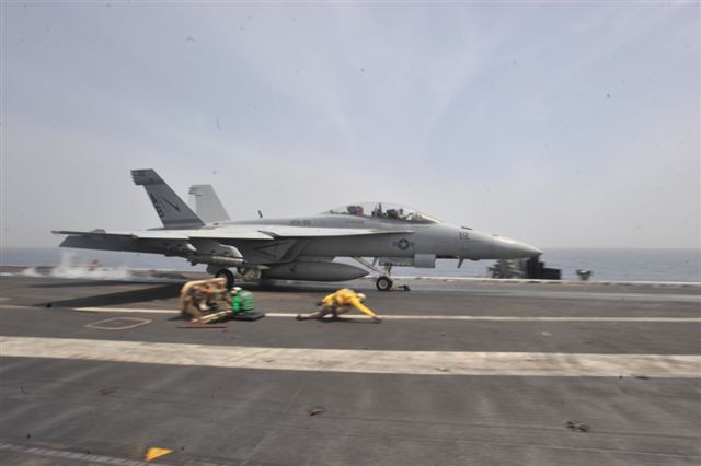 193k | An F/A-18C Hornet, assigned to the "Thunderbolts" of Marine Fighter Attack Squadron (VMFA) 251, launches from catapult four during flight operations aboard aircraft carrier USS Enterprise (CVN 65), 15 September 2012, in the Arabian Sea. The Big E was deployed to the U.S. 5th Fleet area of responsibility conducting maritime security operations, theater security cooperation efforts and support missions as part of Operation Enduring Freedom. US Navy photo by Mass Communication Specialist 3rd Class Jared King (# 120915-N-CH661-018). |