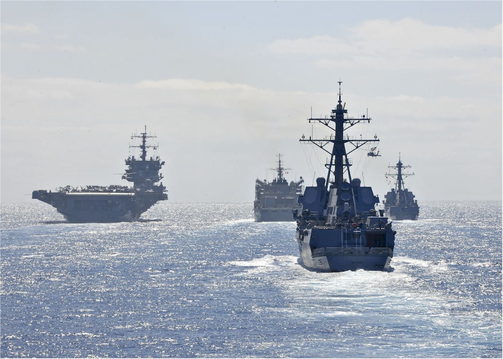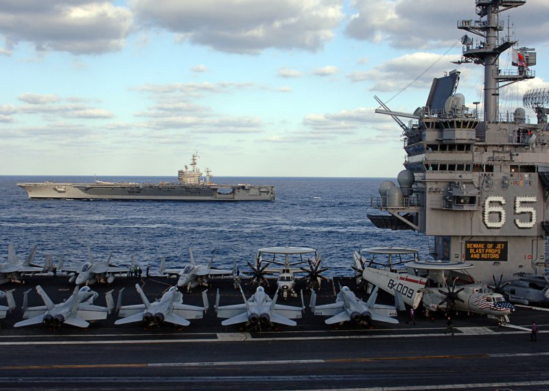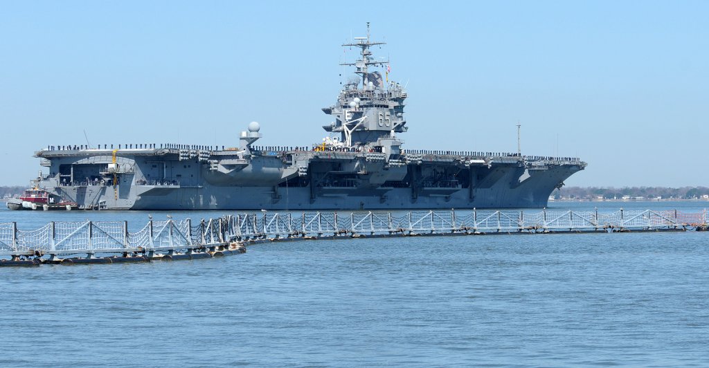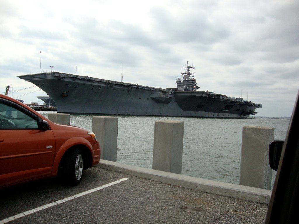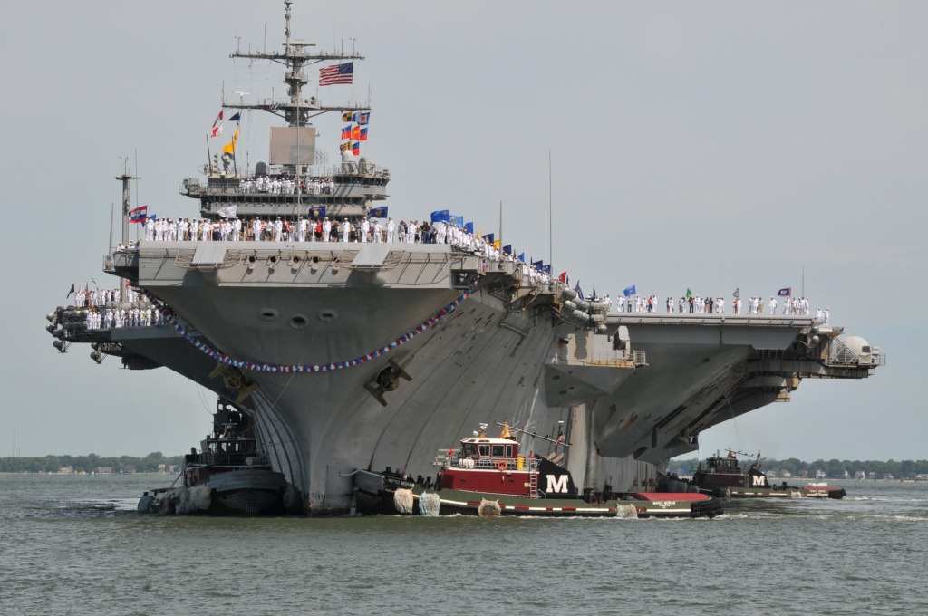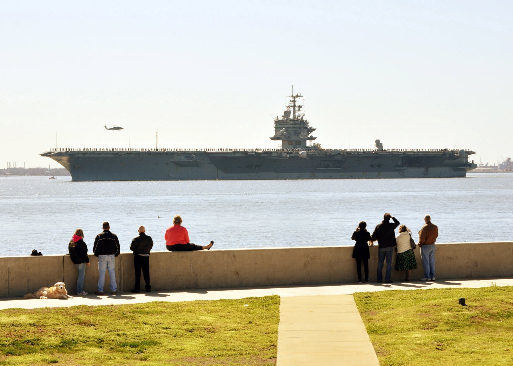 537k | Naval Station Norfolk, 19 December 2012. Ships are, right to left: USS Dwight D. Eisenhower (CVN-69), USS George H.W. Bush (CVN-77), ex-USS Enterprise (CVN-65), USS Bataan (LHD-5), USS Abraham Lincoln (CVN-72), USS Harry S. Truman (CVN-75), and USS Wasp (LHD-1). U.S. Navy photo by Mass Communication Specialist 3rd Class Kevin J. Steinberg, # 121219-N-TB177-875. |