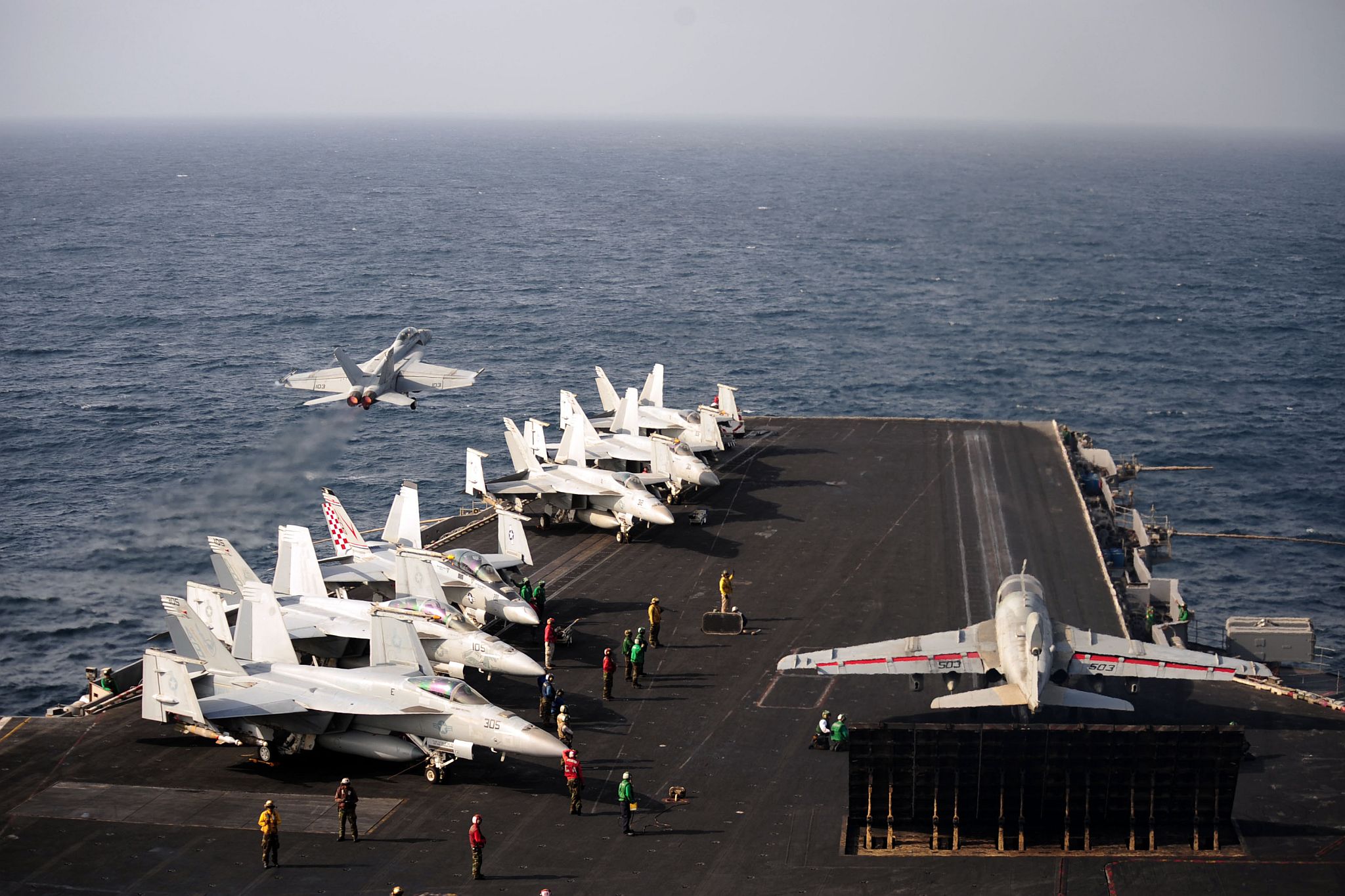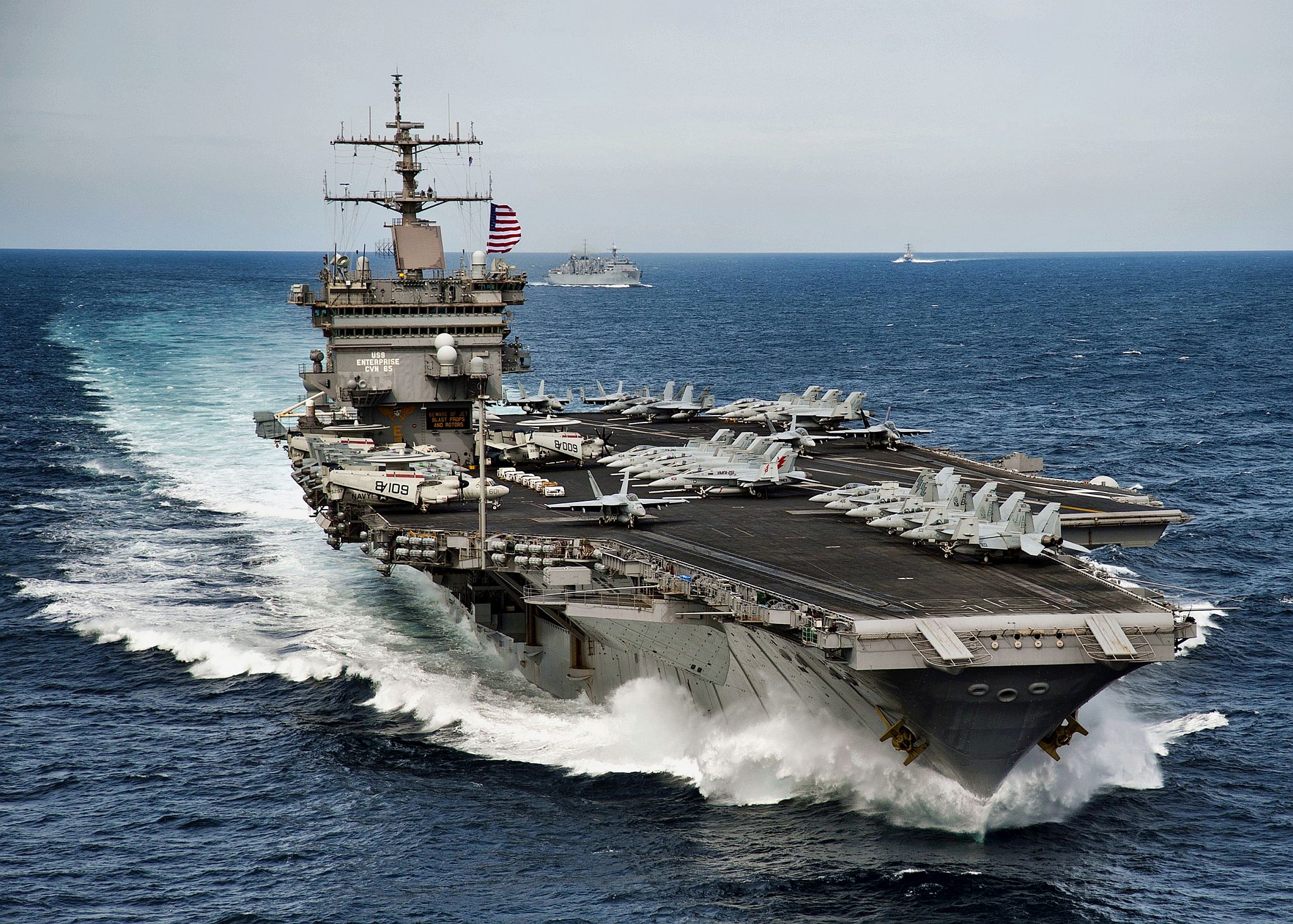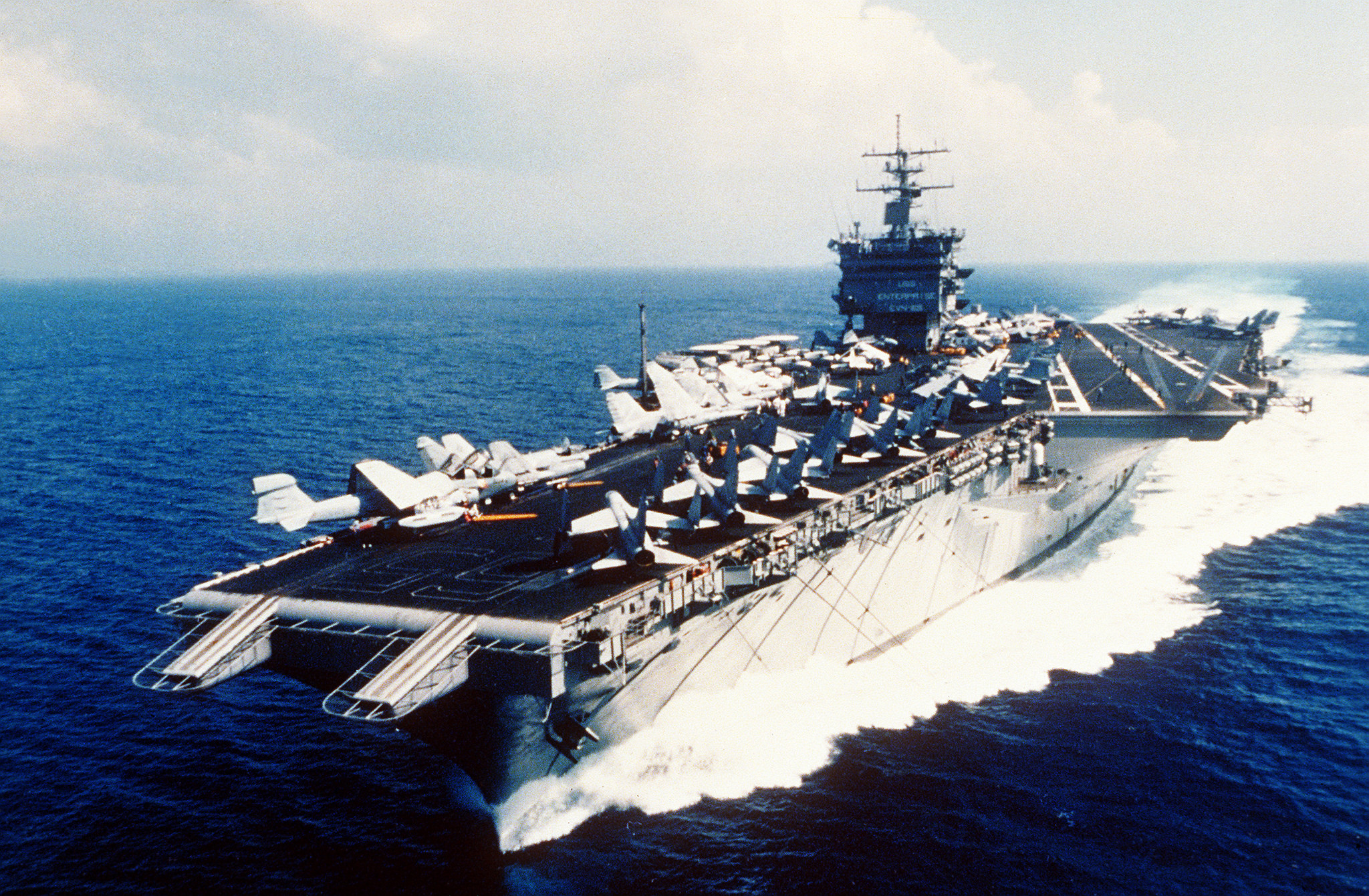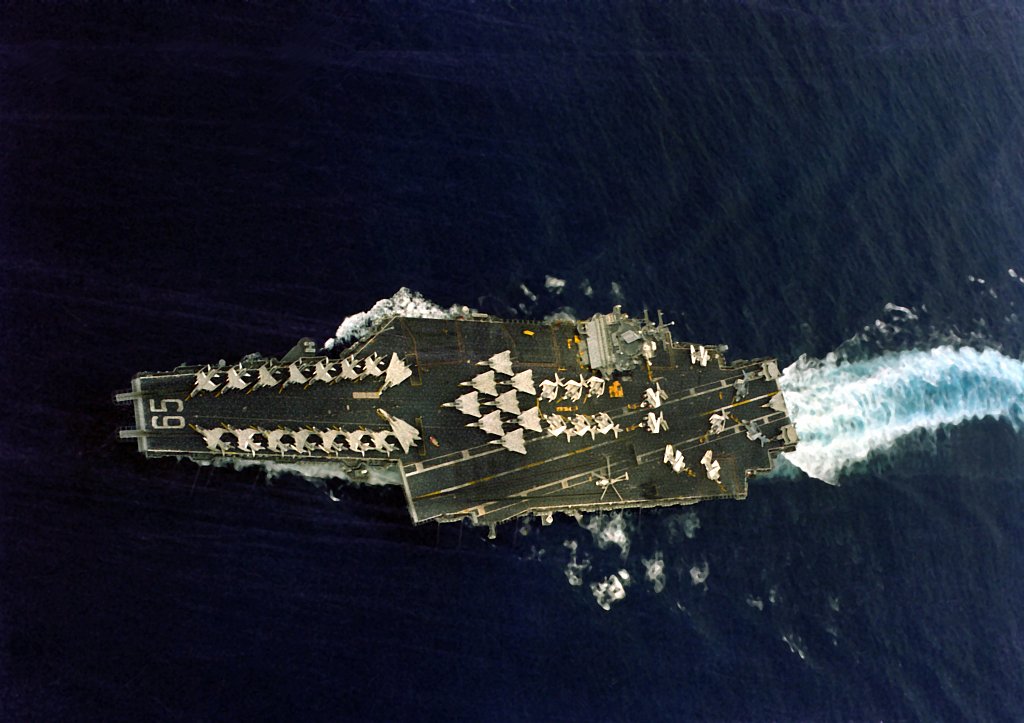 462k | USS Enterprise (CVN-65) underway with Carrier Air Wing (CVW) 11, sometime in 1982–1985. |