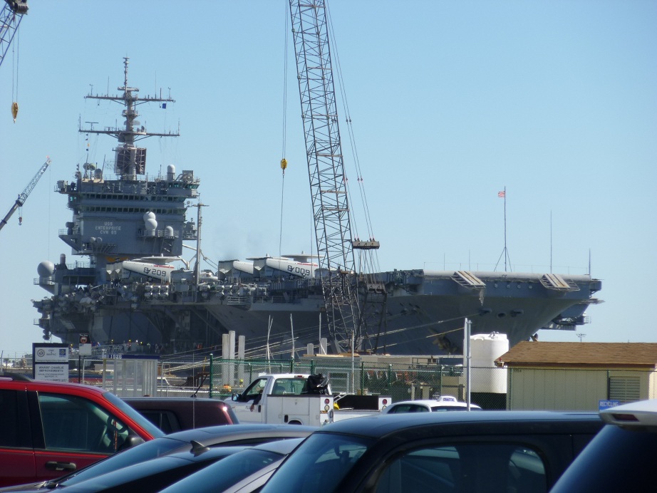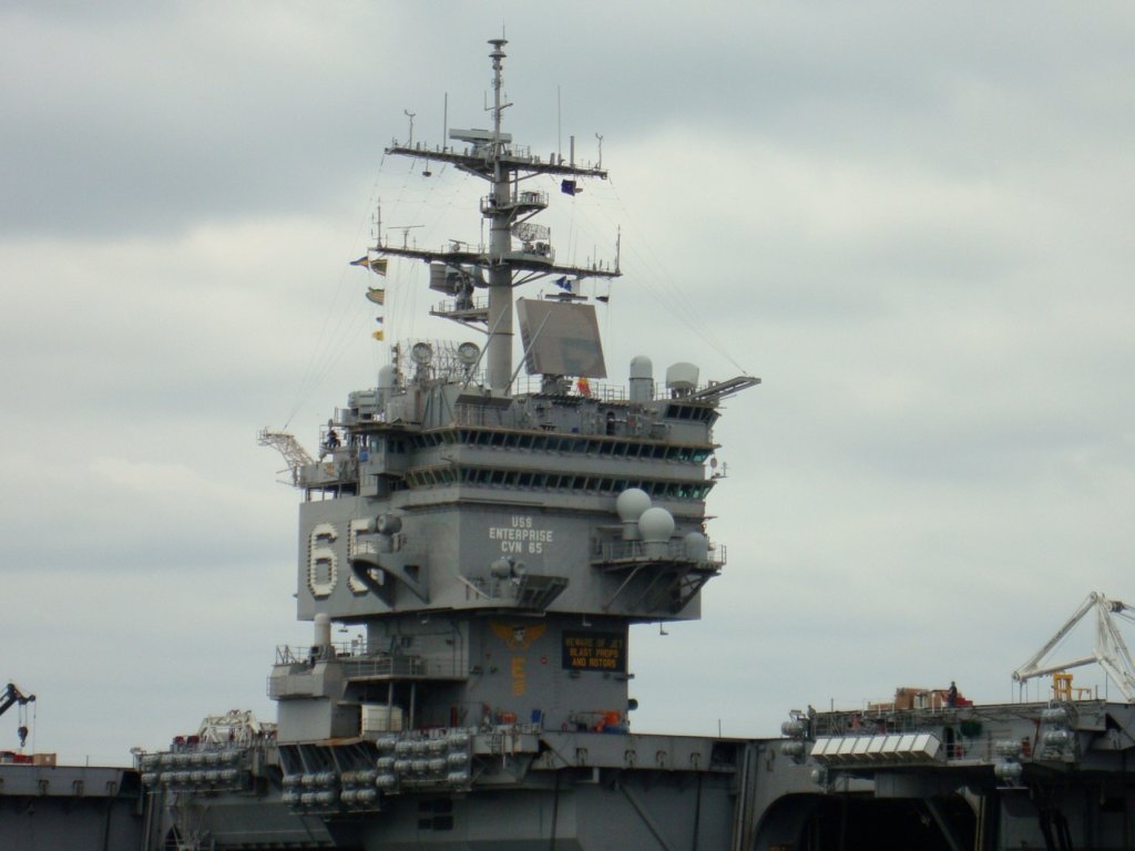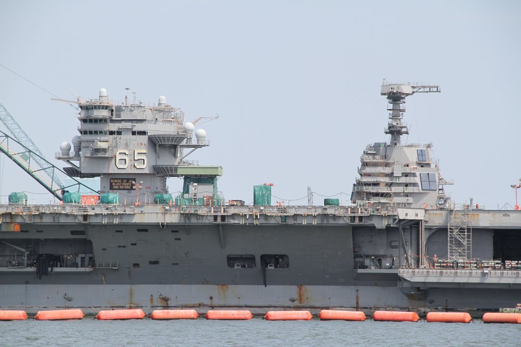 105k | Two pictures of ex-USS Enteprise (CVN-65) taken on 14 July 2014. The Big E was being dismantled at Newport News Shipbuilding. Visible in the background of both pictures is the island house of PCU Gerald R. Ford (CVN-78) which was being outfitted at the adjacent pier. |