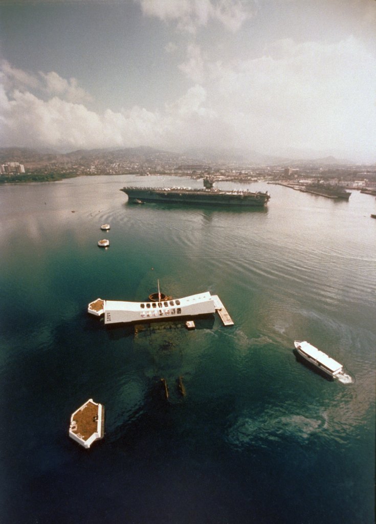 26k | Rail manned, passing Arizona Memorial. Pearl Harbor. | USN | |