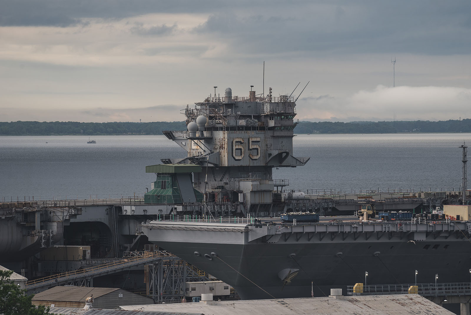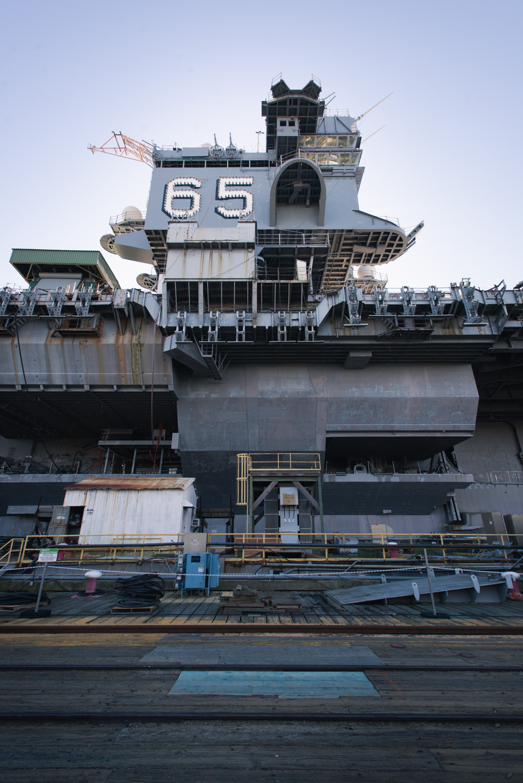 566k | The legendary Big E—the Navy's first nuclear-powered aircraft carrier—sits pierside before being moved to Dry Dock 12. Ex-Enterprise was moved so shipbuilders could begin work on upgrades to Pier 2, which was built in 1942 and last upgraded in 2013. Photo by Ashley Cowan, 4 February 2021. |