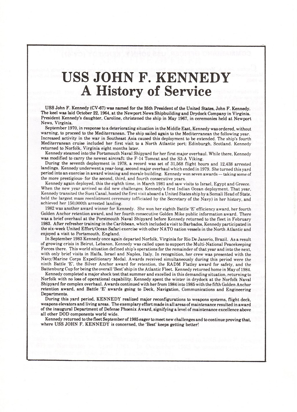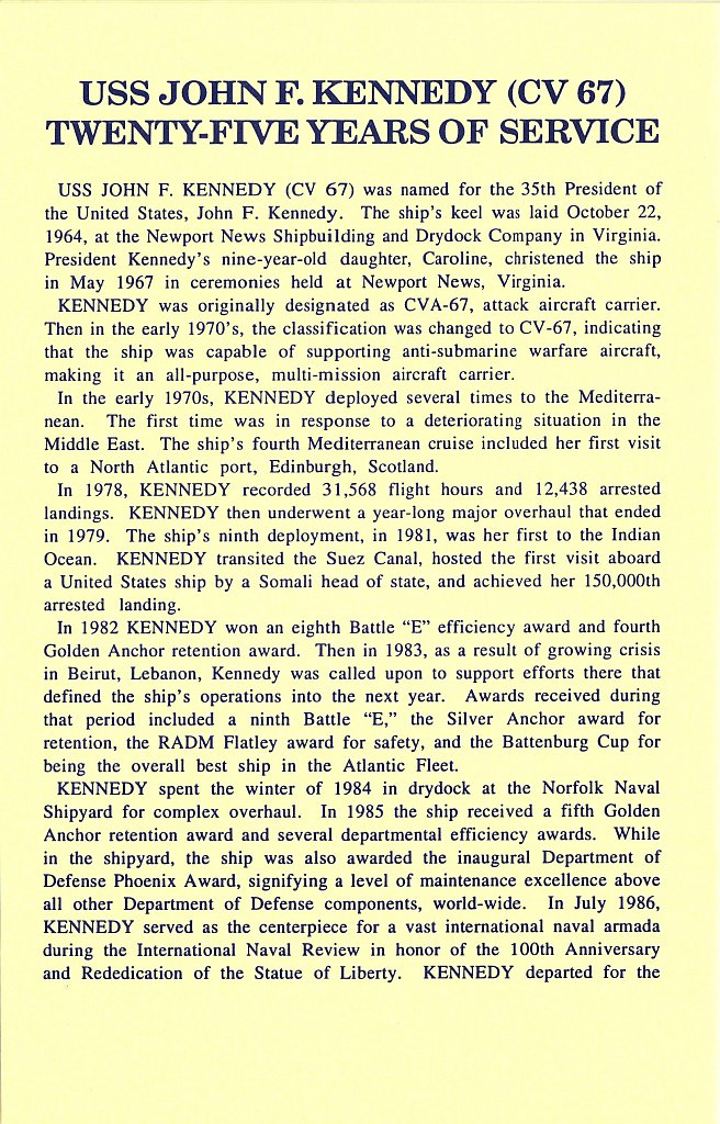 USS John F. Kennedy (CVA-67 / CV-67) Main Page |