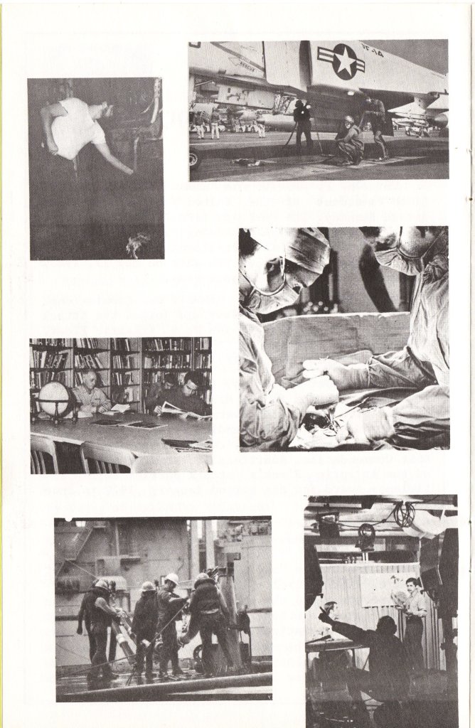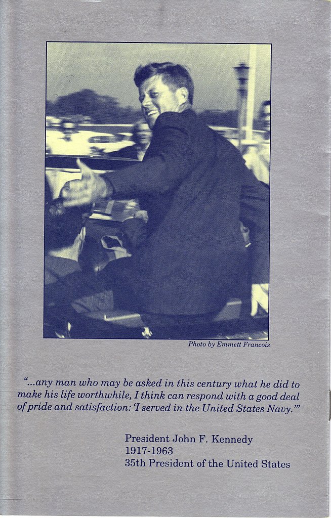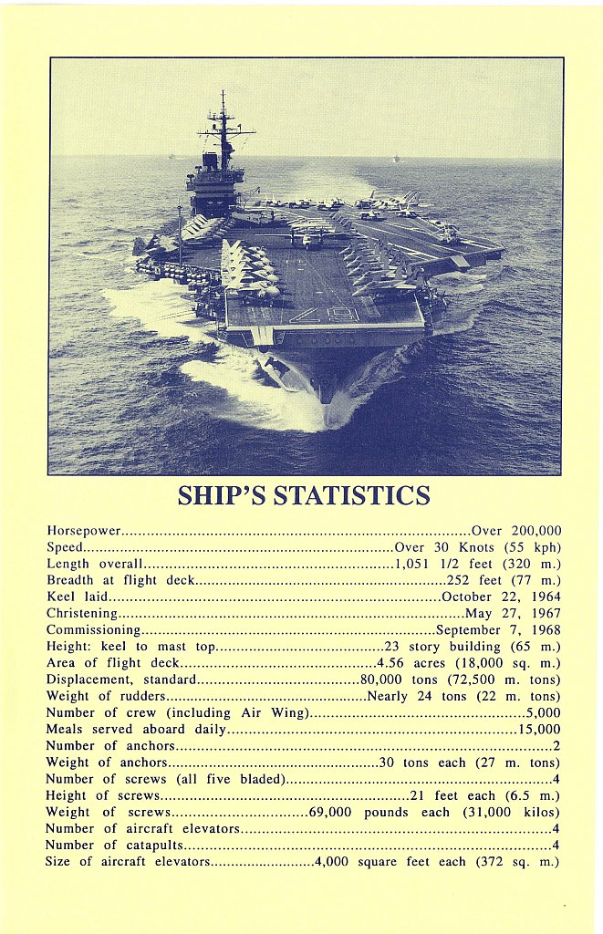 | "These Albums were made up by the ship's Public Affairs Office. These are actual photos on Kodak paper. They were kept on hand in the PAO and only given to special VIP dignitaries. So, there are a lot less of these around than standard printed Welcome Aboard Booklets. [...] I bought this from a former officer aboard the 'Big John' and this is what he told me." | |||