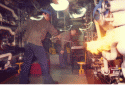 ![]() Page 5 144 Kb "B" Division personnel lighting off a boiler in one of the ship's fire rooms. |