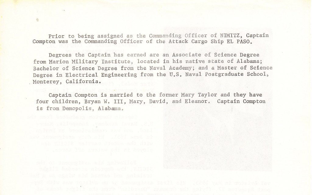 Special thanks to LCDR Brad Fagan, Public Affairs Officer, USS Nimitz (CVN-68);