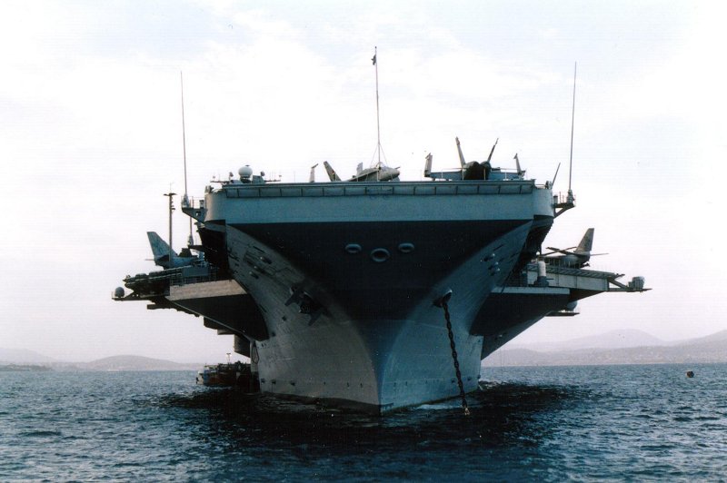 88k | Central Command area of responsibility, Nov. 28, 2002 An aerial "bow shot" of USS Abraham Lincoln (CVN-72) during her regularly scheduled deployment conducting combat operations in support of Operation Southern Watch. U.S. Navy photo by Photographer's Mate Third Class Kittie VandenBosch. [021128-N-8794V-015]. |