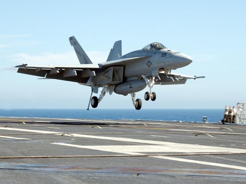 116k | A U.S. Navy F/A-18C Hornet (modex NE300) of Strike Fighter Squadron (VFA) 151 "Vigilantes" recovers aboard the aircraft carrier USS Abraham Lincoln (CVN-72) in 2008(?), during Operation Enduring Freedom. |