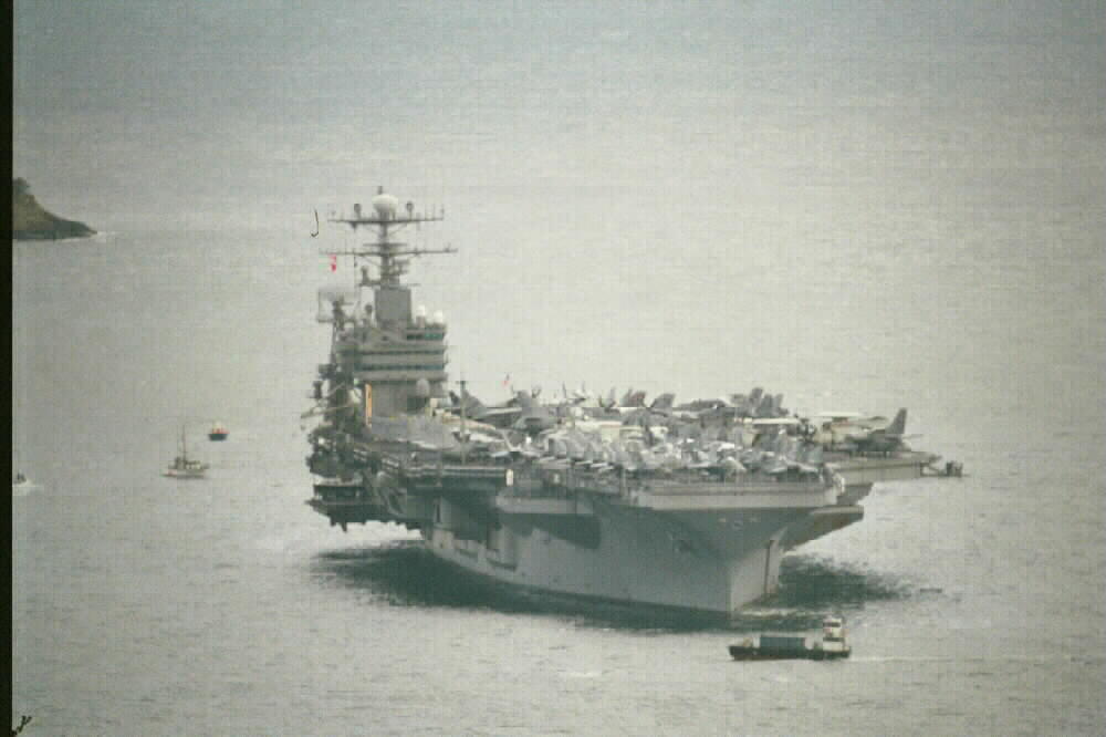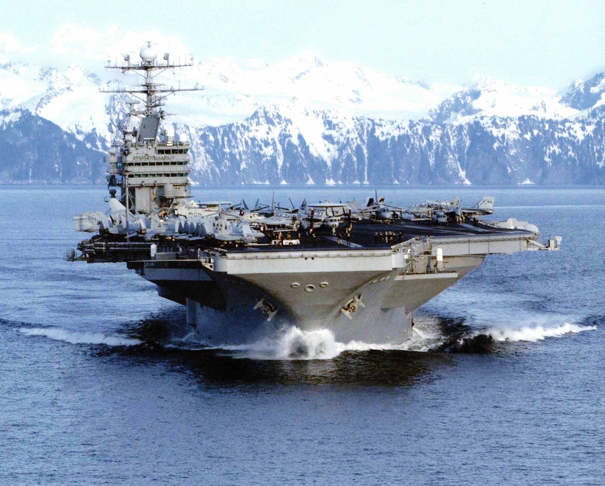 462k | USS Abraham Lincoln (CVN-72) underway with Carrier Air Wing (CVW) 14, probably in the Gulf of Alaska during Northern Edge 2002, 14–30 April. |
