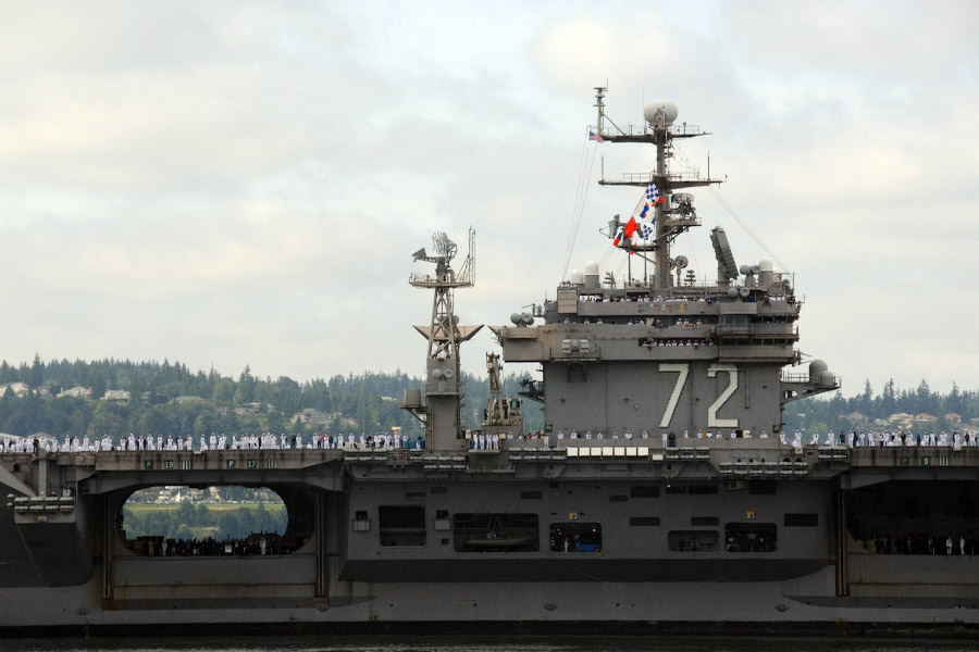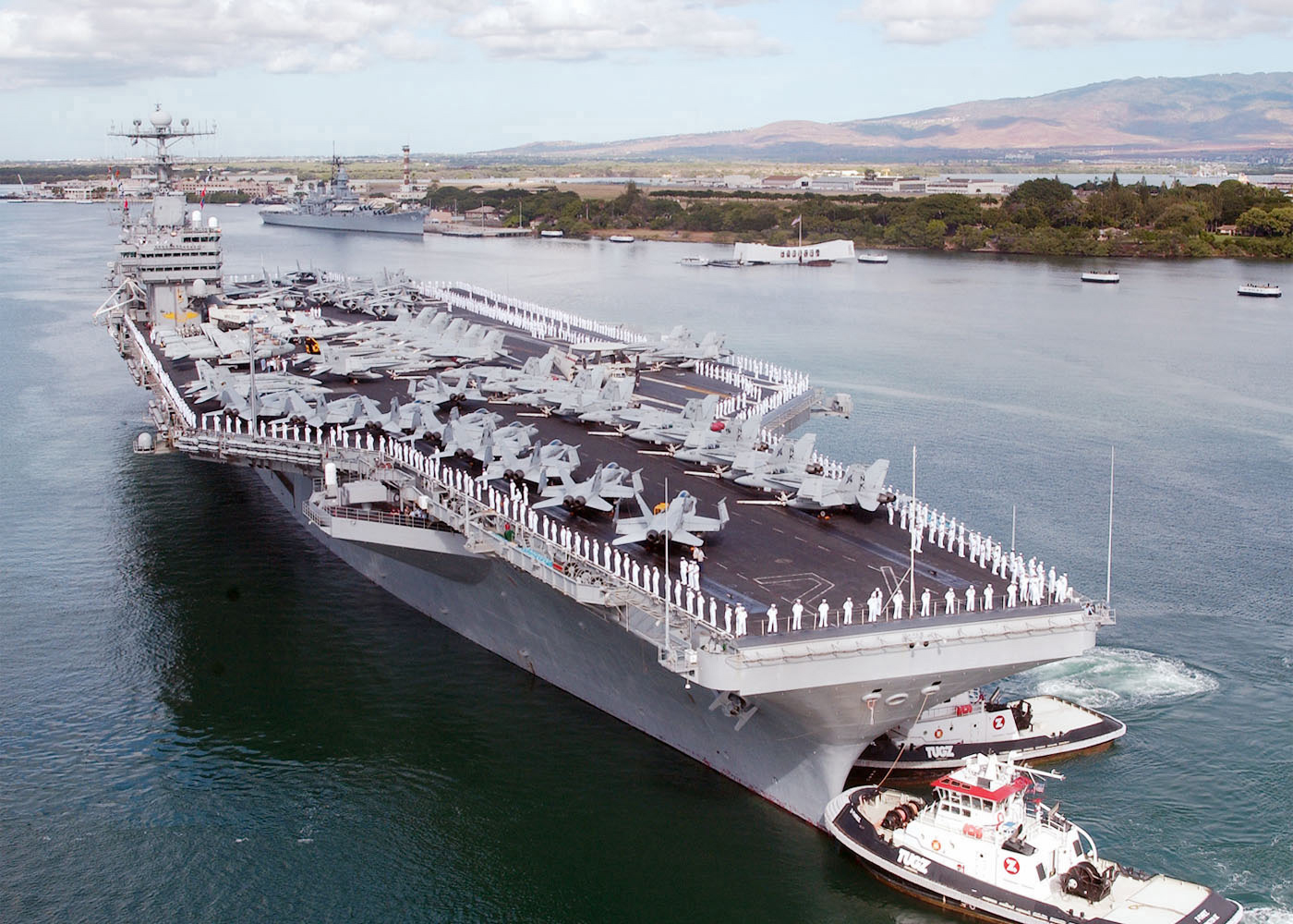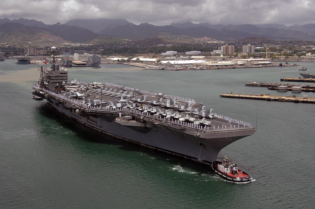 142k | USS Abraham Lincoln (CVN-72) enters Pearl Harbor for a port visit, 10 March 2011. The Nimitz-class aircraft carrier was returning to homeport in Everett, Wash., after a six-month deployment to the U.S. 5th and 7th Fleet Areas Of Responsibility supporting maritime security operations and theater security cooperation efforts. U.S. Navy photo by Mass Communication Specialist 2nd Class Arif Patani (# 110310-N-PM781-330). |