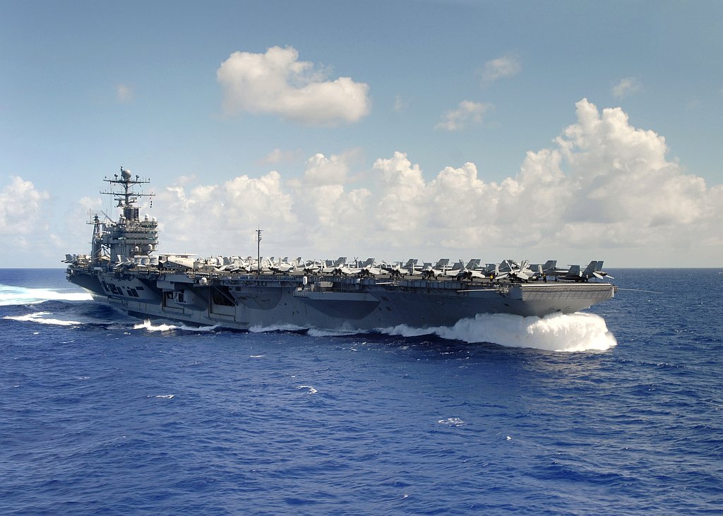 138k | USS Abraham Lincoln (CVN-72) underway at high speed in the Western Pacific Ocean, April 4, 2008. Abraham Lincoln and embarked Carrier Air Wing (CVW) Two were underway on a scheduled deployment to the 5th Fleet area of responsibility. U.S. Navy photo by Mass Communication Specialist 2nd Class James R. Evans (# 080404-N-7981E-692). |