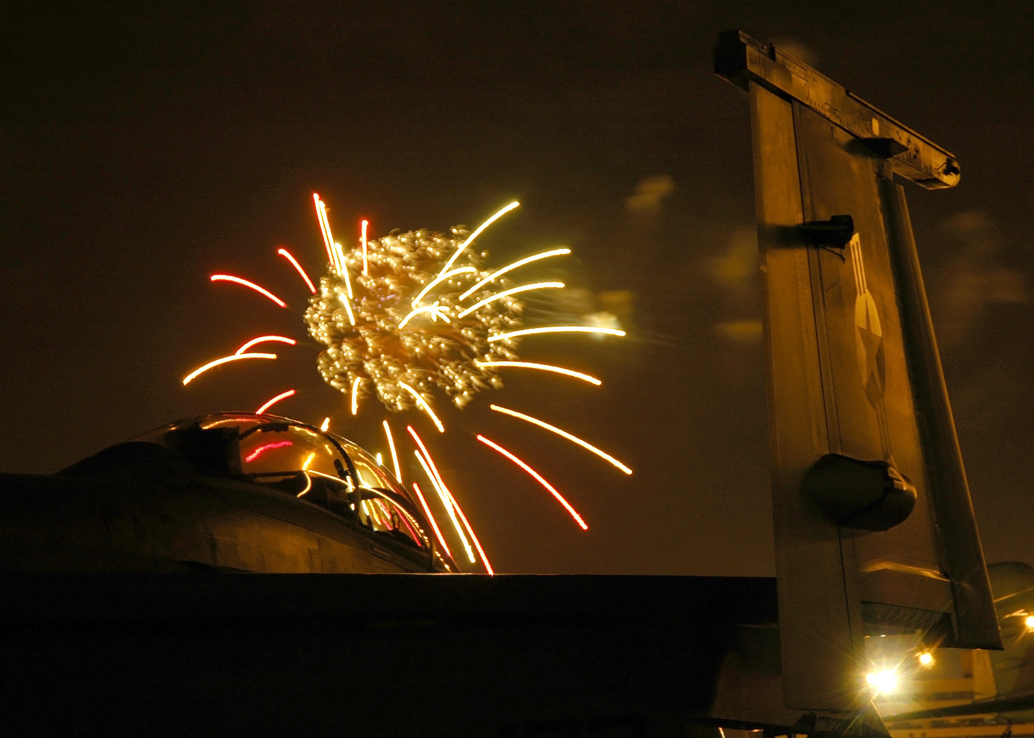 103k | Nov. 1, 2002 Lightning strikes on the horizon, light up the bow of the aircraft carrier during a storm in the Arabian Sea. U.S. Navy photo by Photographer's Mate 2nd Class Aaron Ansarov. [021101-N-4309A-003]. |