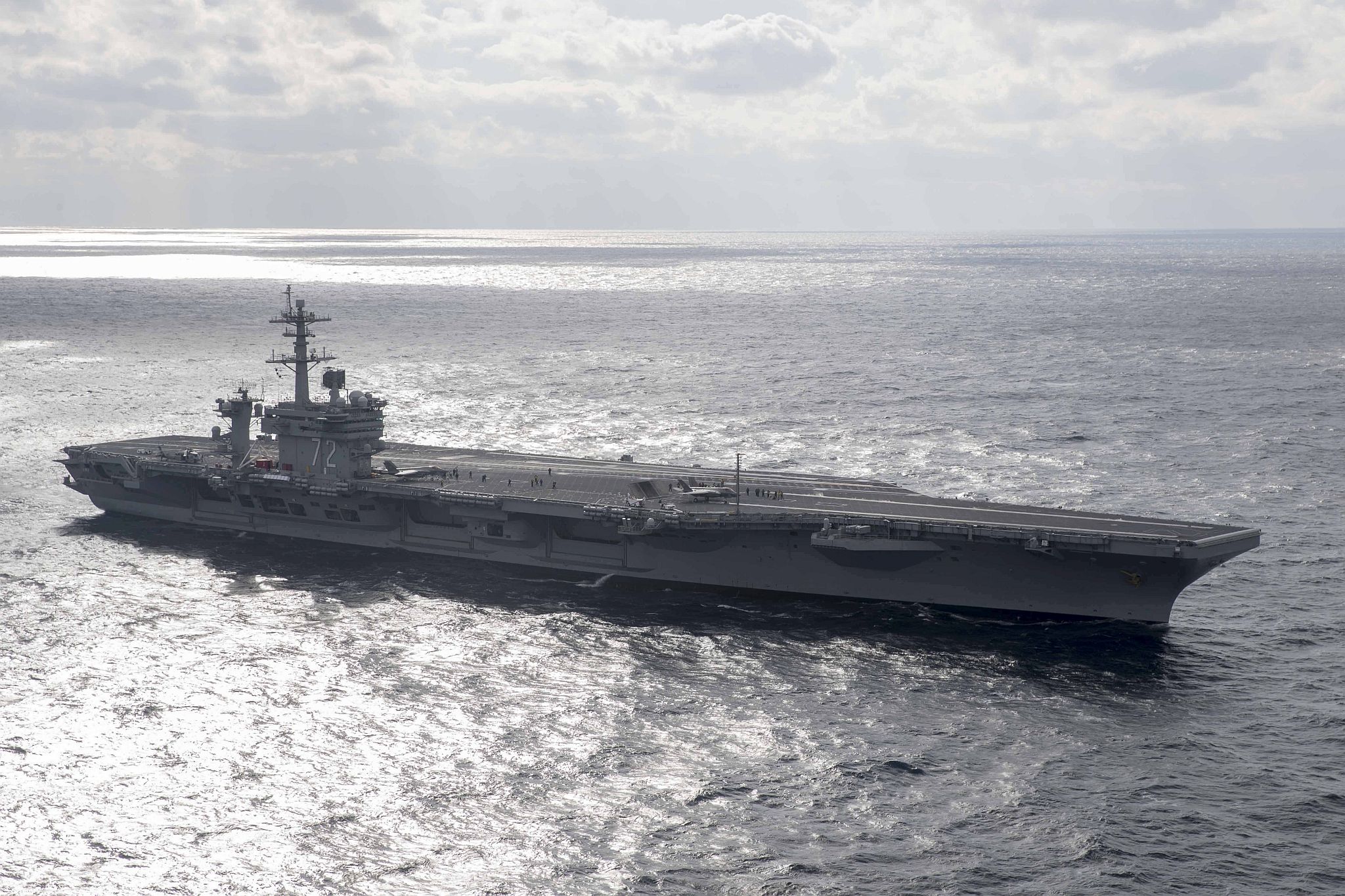 127k | USS Abraham Lincoln (CVN-72) conducts high-speed turn drills during sea trials in the Atlantic Ocean, 11 May 2017. The Nimitz-class aircraft carrier was underway after successfully completing her mid-life refueling and complex overhaul and would spend several days conducting sea trials, a comprehensive test of many of the ship's key systems and technologies. U.S. Navy photo by Mass Communication Specialist 3rd Class Juan A. Cubano (# 170511-N-SA173-199). |