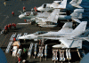 53k | Nov. 1, 2002 An F-14D Tomcat, assigned to the "Tomcatters" of Fighter Squadron Thirty One (VF-31), launches off catapult three, which is one of four steam driven catapults on the ship's flight deck. Abraham Lincoln (CVN-72) and Carrier Air Wing Fourteen (CVW-14) were on a scheduled six-month deployment conducting combat missions in support of Operations Enduring Freedom and Southern Watch. U.S. Navy photo by Photographer's Mate Airman Philip McDaniel. [021101-N-9593M-045]. |