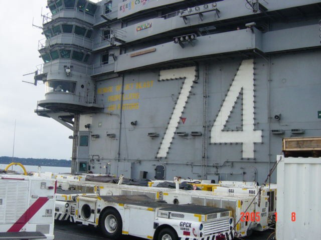 ![]() 8 January 2005 Nearing Bremerton. Hangar bay (127Kb) |