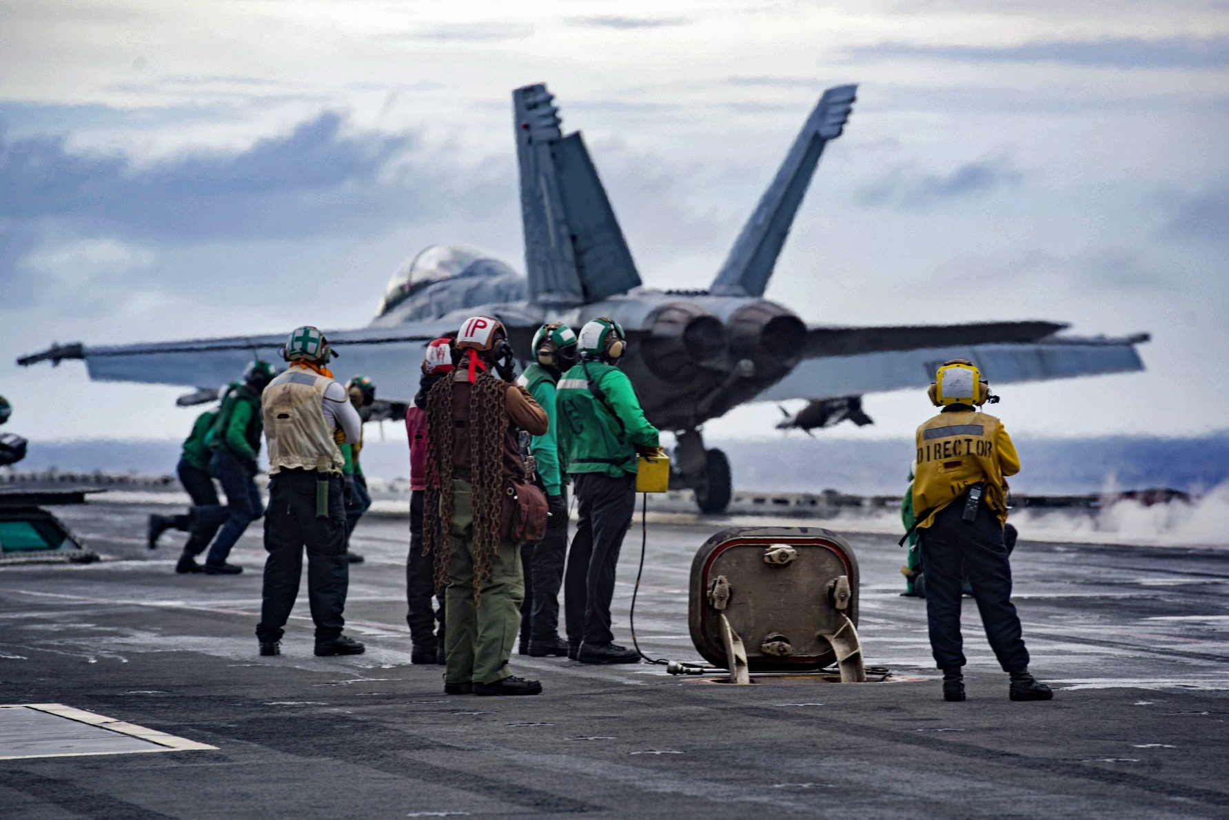 1.06M | Sailors prepare to reset the catapult system as an F/A-18F Super Hornet attached to the "Diamondbacks" of Strike Fighter Squadron (VFA) 102 launches from USS Ronald Reagan (CVN-76) in the Philippine Sea, 14 September 2020, during exercise Valiant Shield 2020. U.S. Navy photo by Mass Communication Specialist 3rd Class Jason Tarleton. |