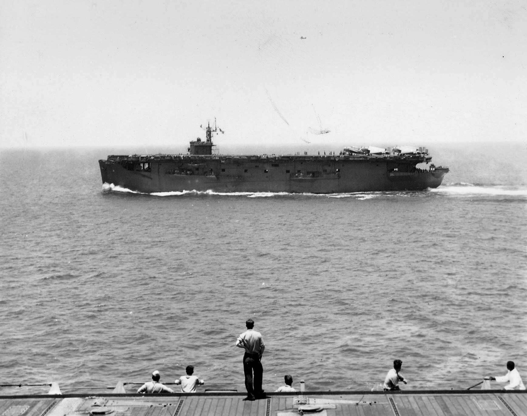 154k | This appears to be a late-war photo, taken while USS Nassau (CVE-16) was performing transport and ferry missions between Alameda, Pearl Harbor, Guam, Manus, Samar, and Saipan. |