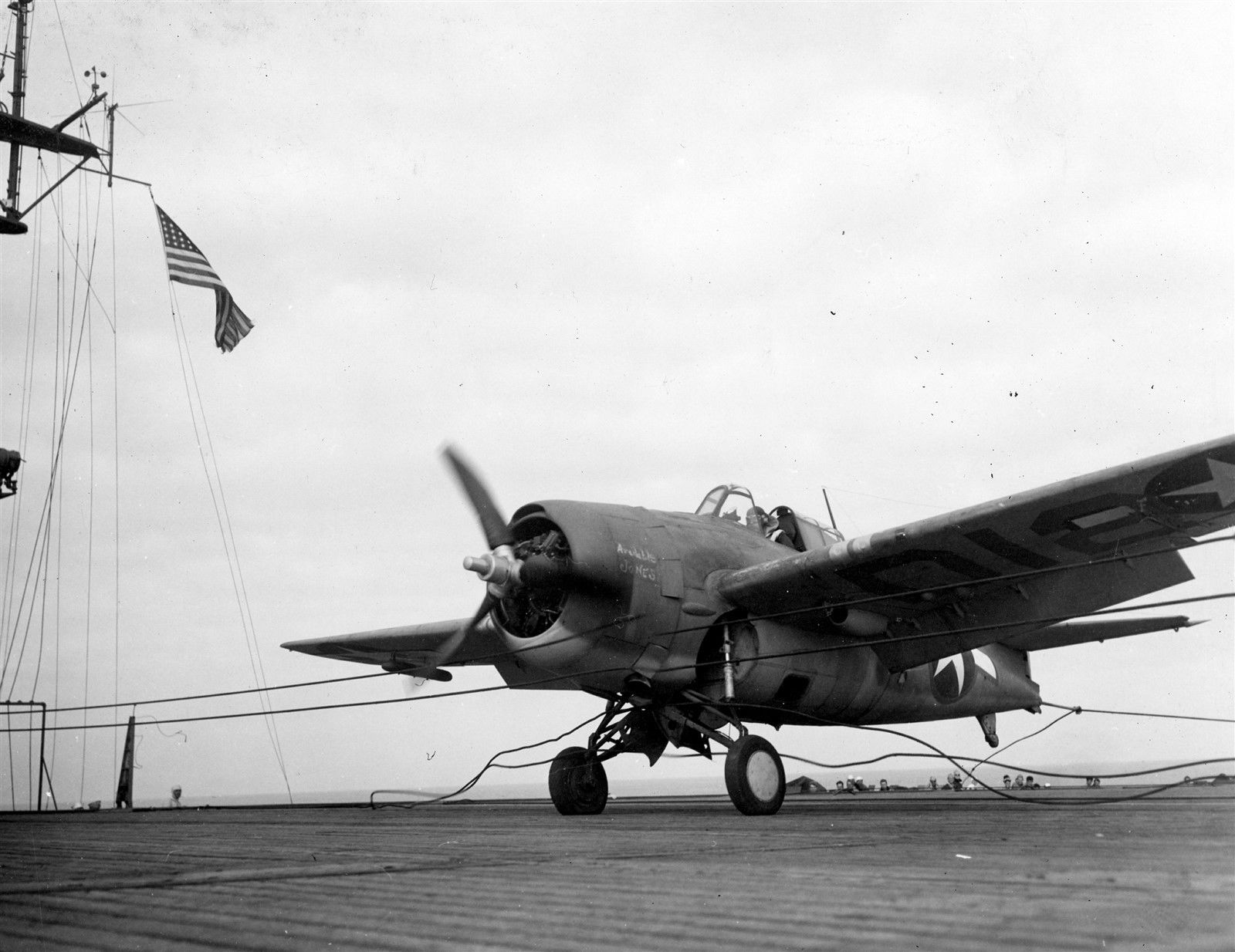 261k | Grumman F4F Wildcat launching from USS Nassau, 1943. |