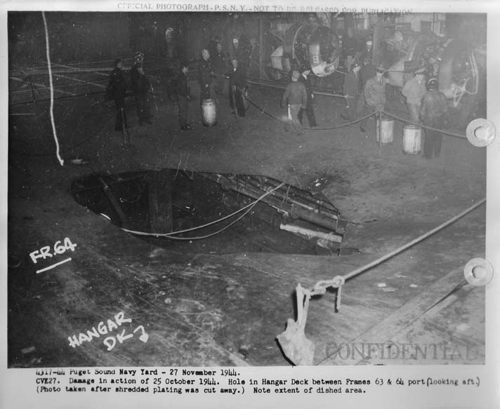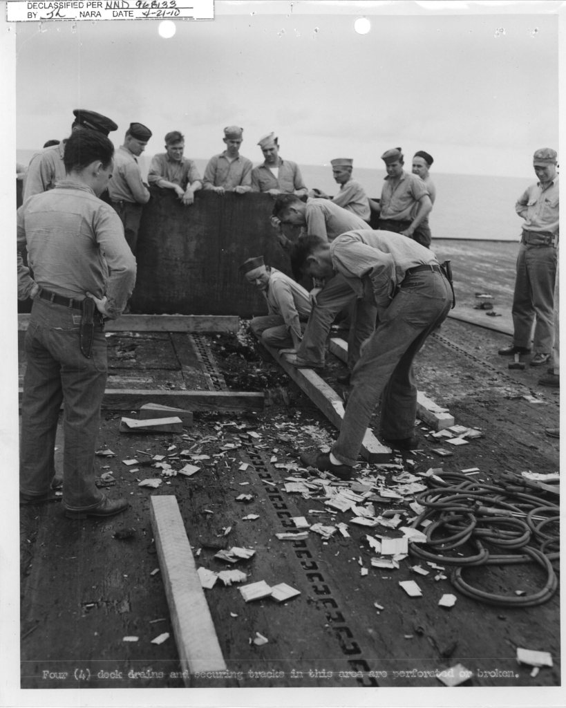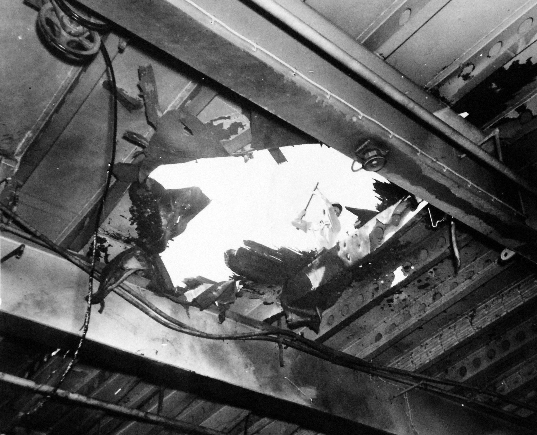 68k | Puget Sound Navy Yard, 27 November 1944. Damage in action of 25 October 1944. Shrapnel