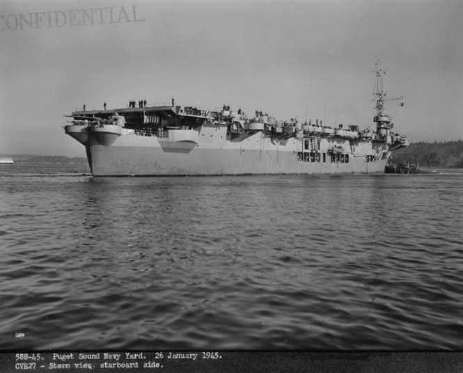 32k | Puget Sound, Washington, 31 January 1945. Dead astern view of USS Suwannee