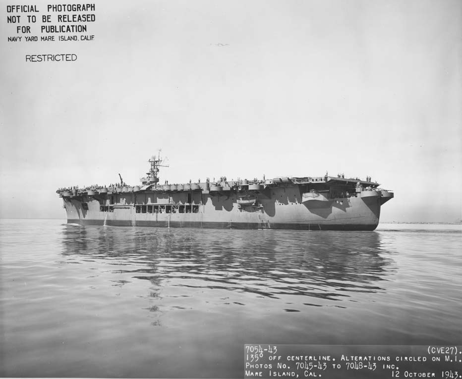 59k | USS Suwannee (CVE-27), 135° off centerline view, 12 October 1943. Official photo, Mare Island Navy Yard # 7054-43, now in the Mare Island Naval Shipyard Ship Files, San Francisco National Archives. | Tracy White, Researcher @ Large | |