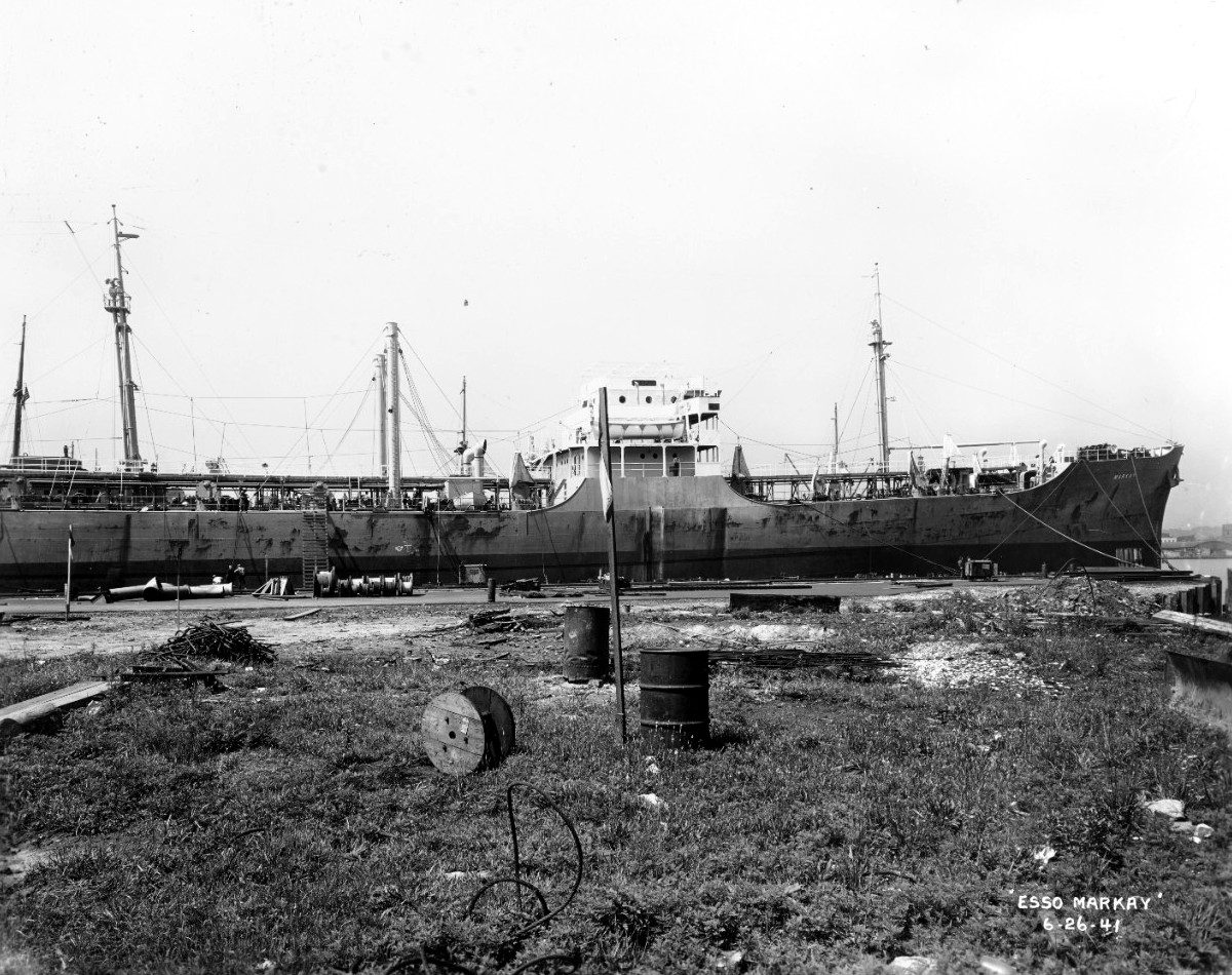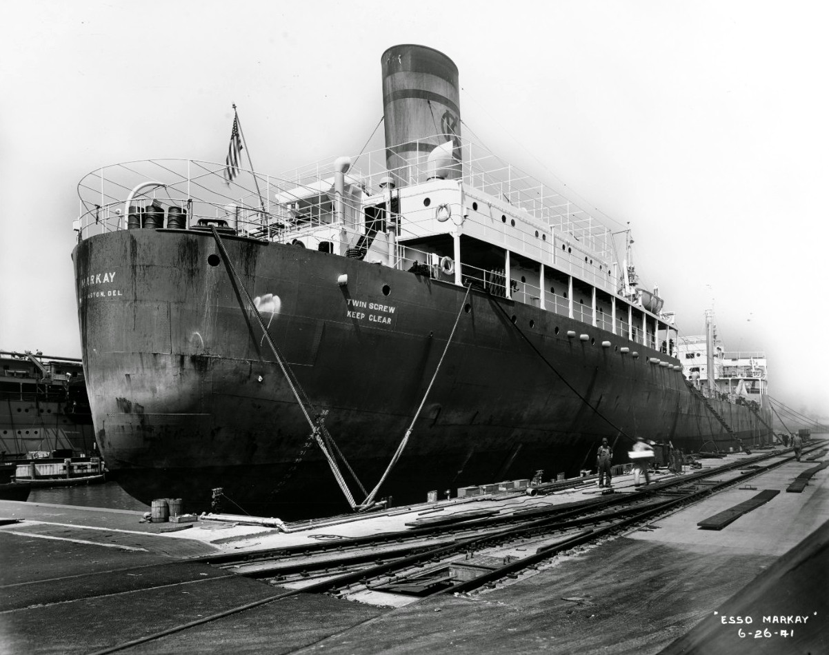 40k | Keystone Tankship Corp. tanker SS Markay tied up pierside (NS0302743) and underway (NS0302743a), location and dates unknown. Betty wrote: "My father, Commander Vernon Dietz served on [this ship]. He was employed by Keystone Tankship Corp. from 1933–1949." | Betty Hillard, via Auke Visser's Famous T-Tankers Pages, via Robert Hurst |