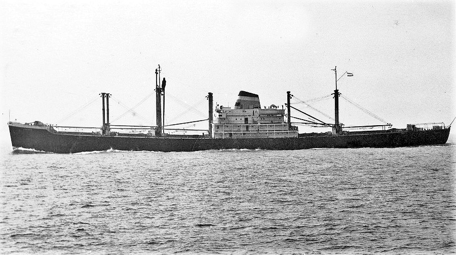 196k | Archive photo of the Argentinian vessel Lancero, ex-Delgada CVE-40), ex-HMS Speaker (D90/R314) underway and fully laden. Source unknown. |