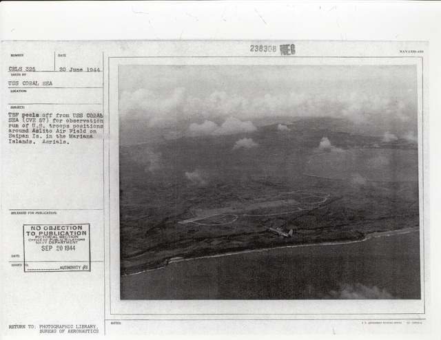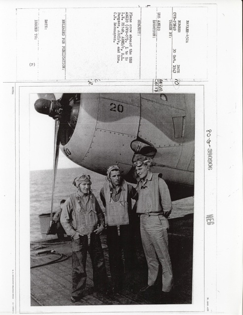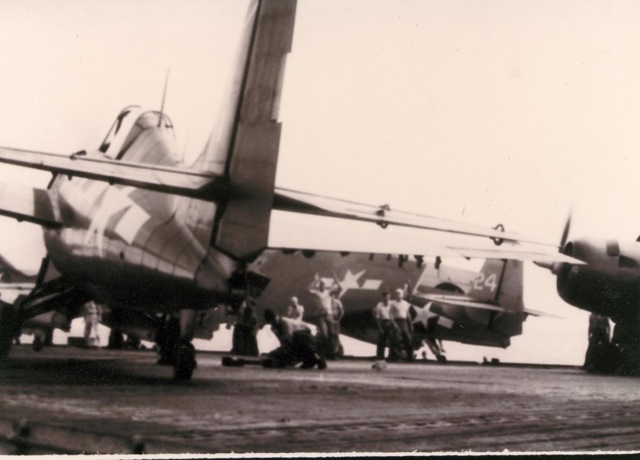 (CVE-57). Pilot Lt. (jg) J.J. Masters. National Archives photo (# 80-G-86023). |