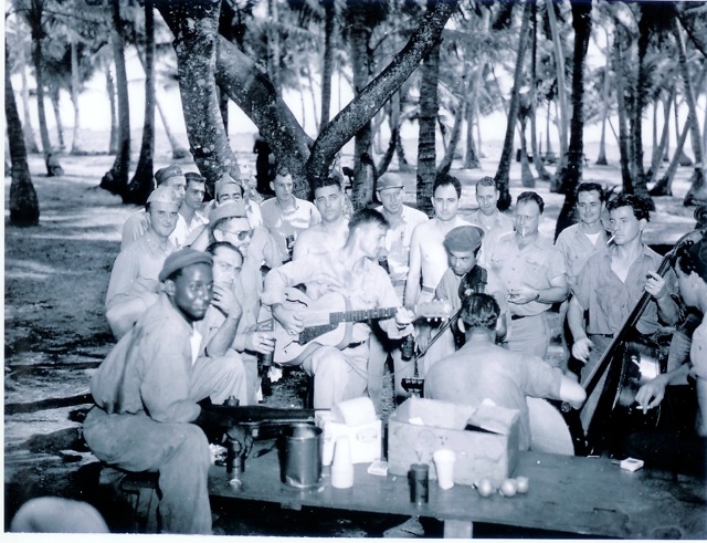 110k | LT Robert L. Thornton and shipmates enjoy some Rest & Recreation at Mogmog Island, Ulithi atoll, Marianas. |