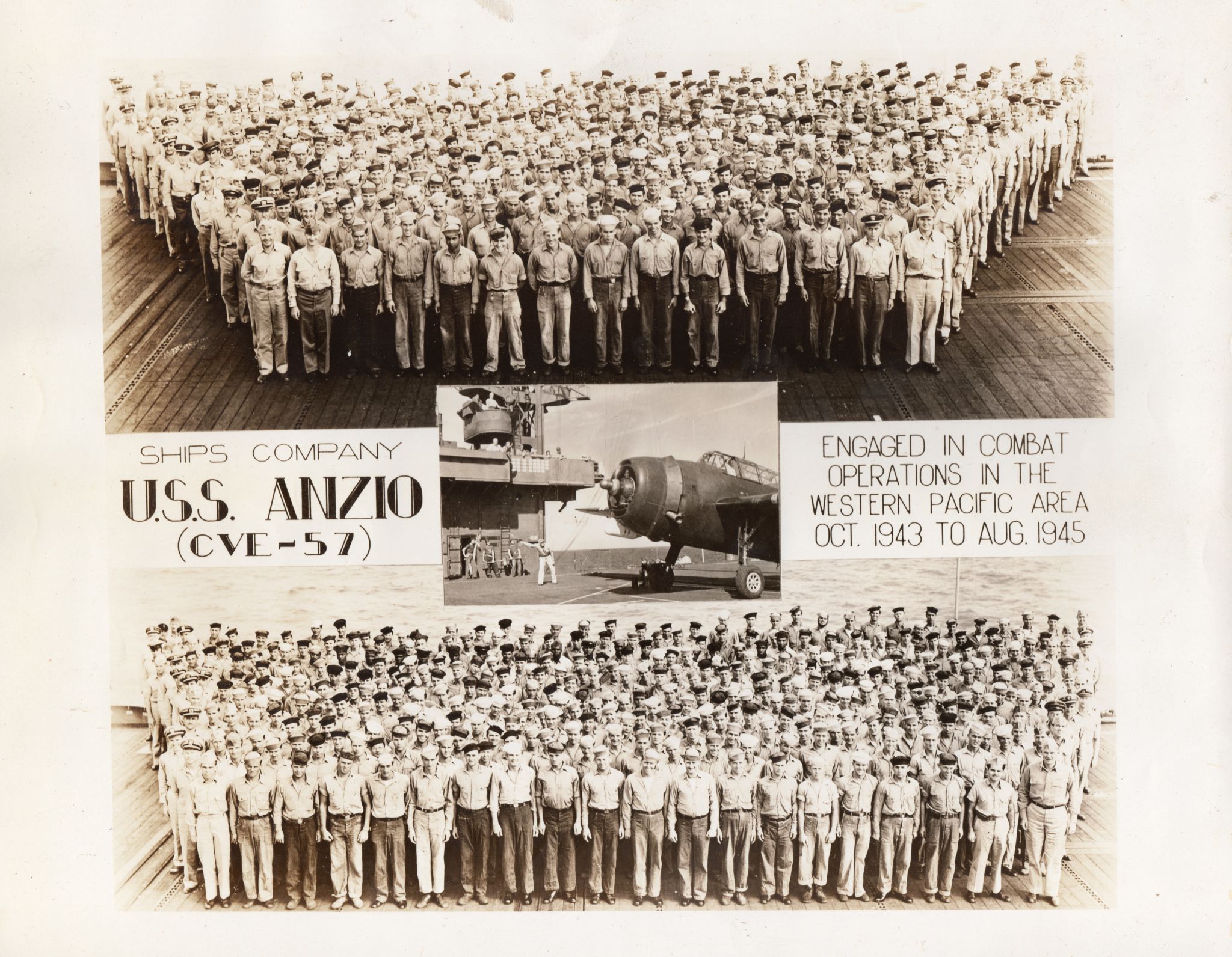 589k | USS Anzio (CVE-57). Although "personalized" for each ship, this is in fact a generic image of the Casablanca-class CVEs. |
