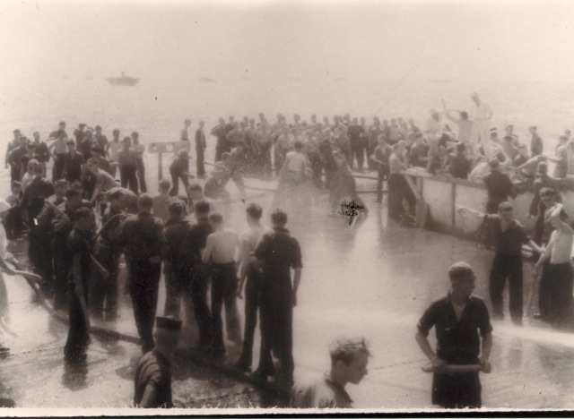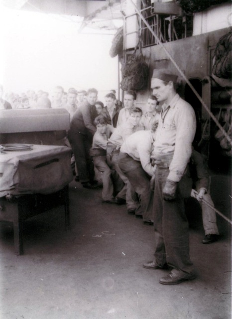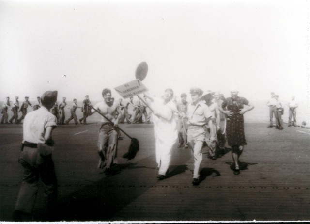 76k | "Crossing the Line" ceremony, 15 March 1944. National Archives photo (# 80-G-230311). |