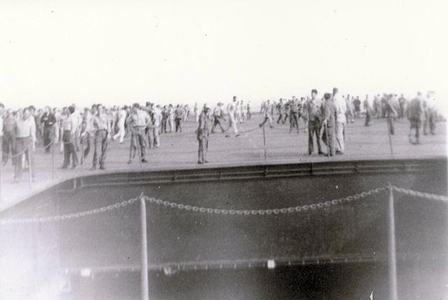 368k | If you can recognize the scene, please let us know. Charlie, a former crewmember, commented that "people would fish off the back of the ship, they caught a large shark one day." (Thanks to David Thornton.) |