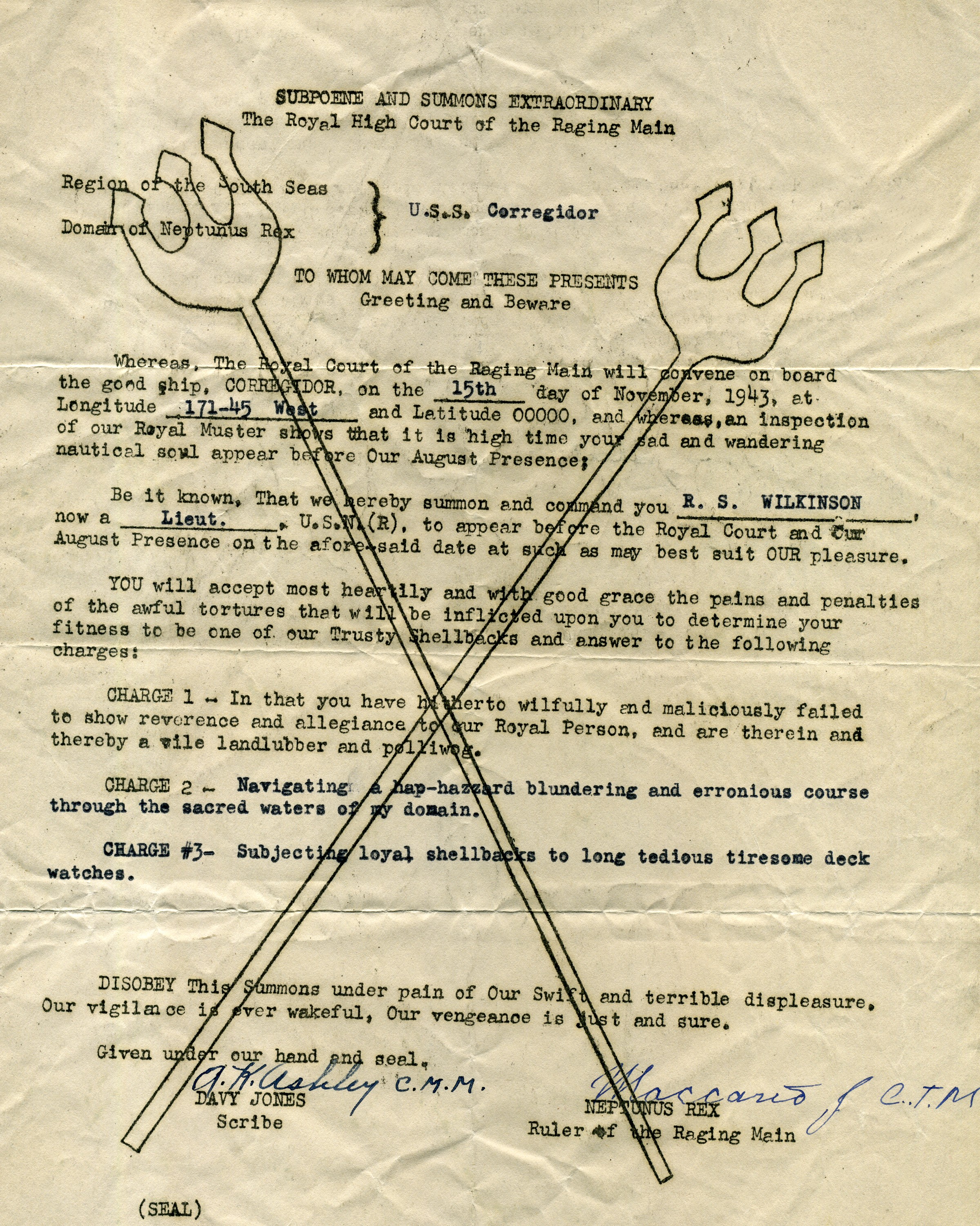 116k | ACV-58 (later CVE-58 and CVU-58) was named Anguilla Bay (not Auguilla, as many sources incorrectly spell), 22 January 1943, for a bay between Anguilla and Esquivel Islands, in Maurelle Island, Alexander Archipelago, Alaska (NS0305808). The name comes from the Spanish word anguila, meaning "eel," and was given in 1924 by the U.S. Coast and Geodetic Survey (USC&GS), "from name of island, of which this is the principal indentation." Renamed Corregidor, 3 April 1943, to commemorate the heroic but doomed defense of Corregidor (NS0305808a) during the Philippine Campaign of 1941–42. The fortress, guarding the entrance to Manila Bay, was the scene of the last gallant stand of the outnumbered American-Filipino force which surrendered to the overwhelming Japanese invaders on 6 May 1942. (Map NS0305808 courtesy of Hamstermap.com. Map NS0305808a courtesy of Google Maps Aircraft Carriers: An Illustrated Design History, by Norman Friedman..) NS0305808b: Siege of Corregidor, 1942. Scene in Lateral No. 12 of the Melinta Tunnel, shared by the Finance Office and the Signal Corps. Code machines and telegraph operators of the Signal Corps message center are behind the partition at right rear. Photographed by Major Paul Wint (SC), 24 April 1942. This photo was taken from Corregidor on 3 May 1942 by the last submarine —probably USS Spearfish (SS-190)—to stop there. Members of the Finance Office Staff are in the foreground. Seated at left are (L-R): SSgts Wehrner, Pressman and Salyor and Maj. O.E. Gard. Standing at rear (L-R): TSgt Davis, Col. J.R. Vance and an unidentified man. Seated at right (from rear): Col. R.J. Jenks, LtCol R.E. McElfish, PFC True, SSgt Long, MSgt Walker, PFC Ballou, PFC Kuykendall and SSgt Huff. Photo was furnished to the Signal Corps by Col J.R. Vance. National Archives and Records Administration (NARA) photo, # SC 249636. |