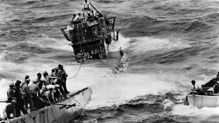 180k | "Depth charges dropped by U.S. Navy destroyer escorts explode near the German submarine U-505 in the Atlantic Ocean on 4 June 1944." |