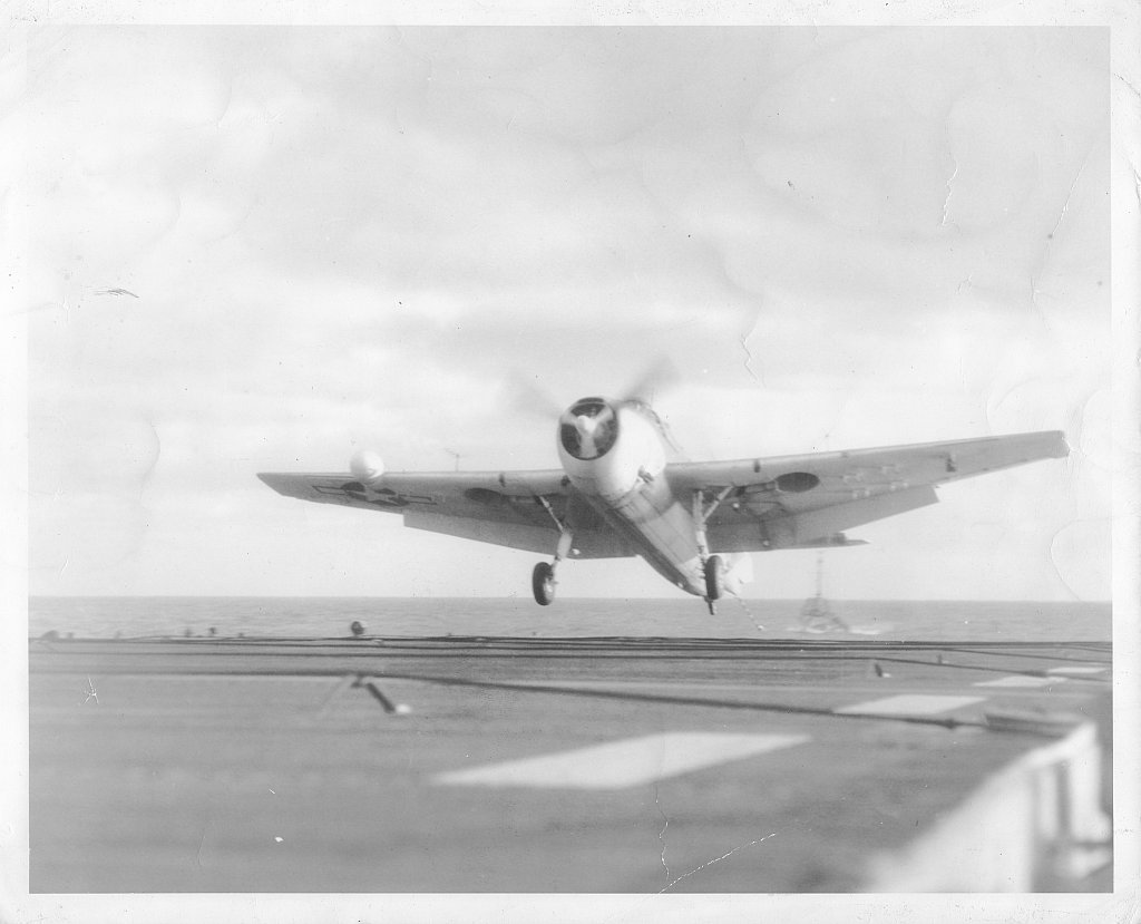 77k | USS Guadalcanal (CVE-60) photo # 846, 11 October 1944, 2,600th landing, Composite Squadron 69 (VC-69). |