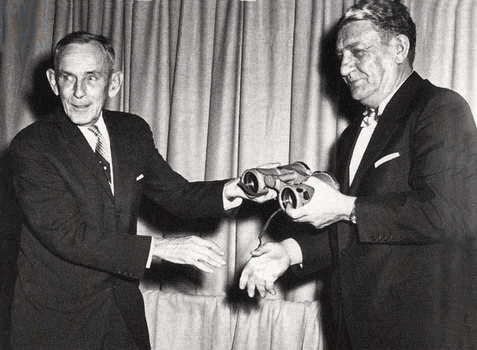 123k | In 1964 Oberleutnant zur See (R)—Lieutenant-Senior (Reserve)—Harald Lange met in Chicago with Captain (later Rear Admiral) Daniel Gallery, to commemorate the 20th anniversary of the capture of U-505. On that occasion Captain Gallery returned the submarine captain's binoculars to Captain Lange. |