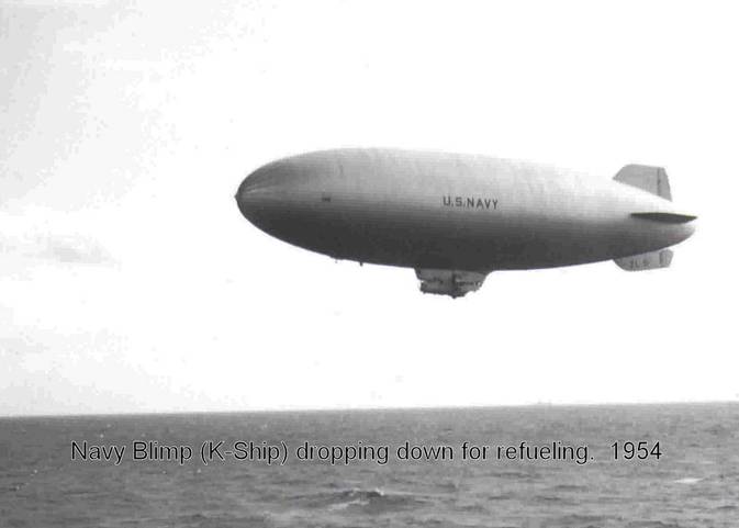 22k | Navy blimp (K-ship) dropping down for refueling, 1954. |