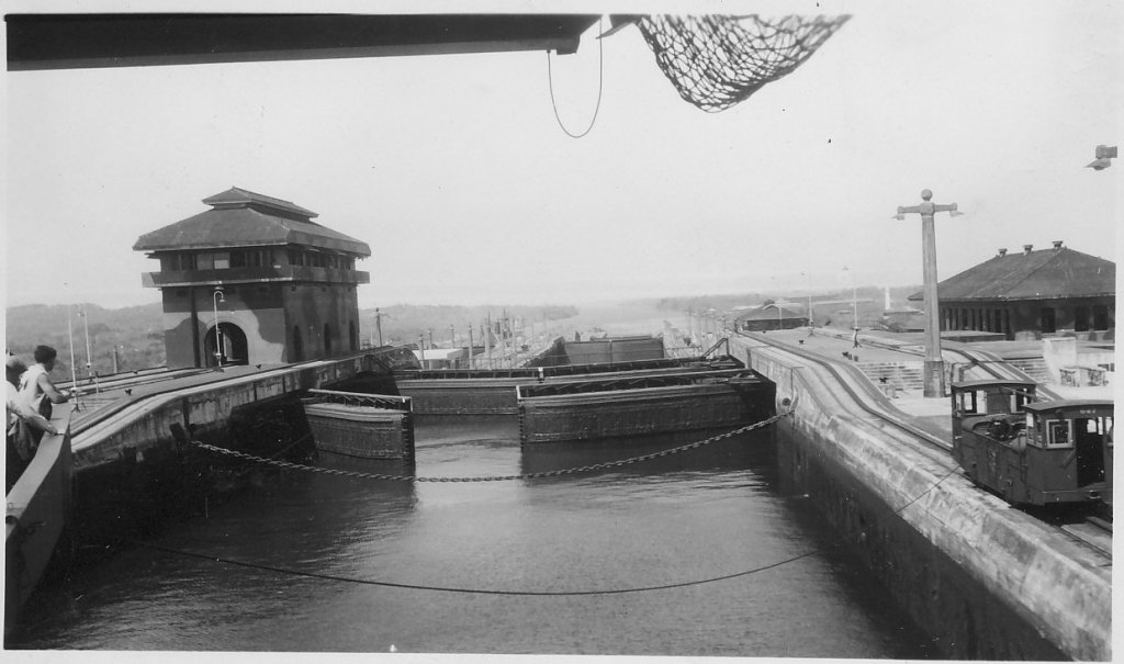 81k | After shakedown along the west coast, USS Mindoro (CVE-120) sailed for the east coast late in January 1946 and arrived Norfolk, Va., 15 February. This is a series of photos taken from Mindoro as she was crossing the Panama Canal. |