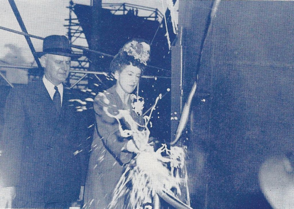 265k | Mrs. Roscoe L. Bowman christened CVE-120 Mindoro on Wednesday, 27 June 1945. |