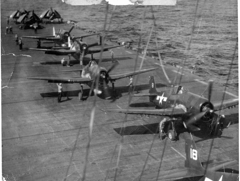 ![]() NS-03-cve29-bd5867 Grumman F6F Hellcats getting ready to take off. (98 Kb) |